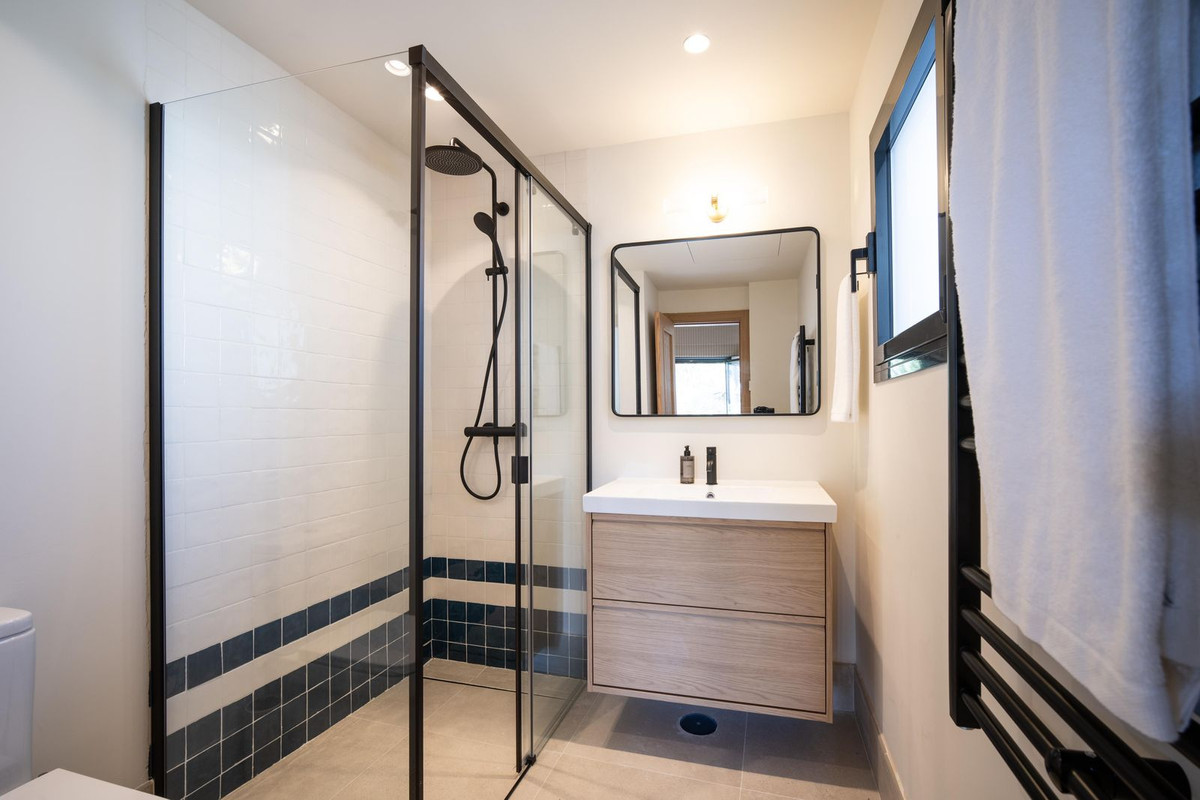L'étage supérieur comprend deux chambres spacieuses, chacune donnant sur une terrasse privative. Au rez-de-chaussée, une pièce supplémentaire peut servir de salle de cinéma, de chambre d'amis ou d'espace multifonctionnel. La propriété dispose de deux salles de bains élégantes et de toilettes séparées.