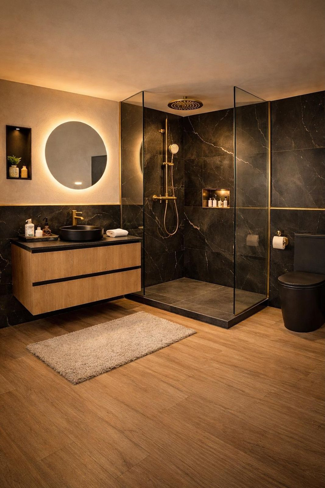 L'étage inférieur comprend trois grandes chambres et deux salles de bains, dont une suite parentale avec salle de bains privative et accès à une vaste terrasse couverte donnant sur le jardin.