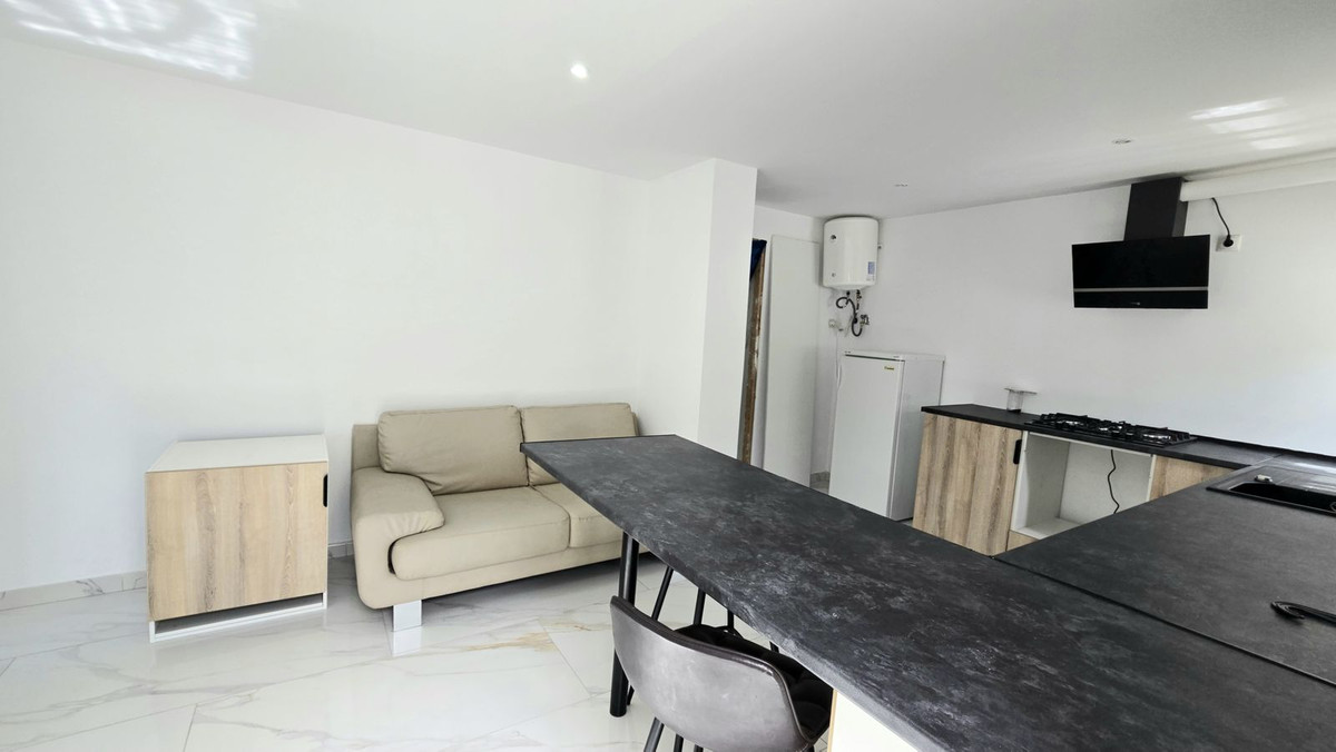 Cette propriété est une villa indépendante ayant fait l'objet d'une rénovation astucieuse. Un appartement de 2 chambres et 2 salles de bains, entièrement rénové et offrant une vue sur la mer, se situe au premier étage. L'entrée donne sur une grande terrasse extérieure panoramique, idéale pour se détendre grâce à ses espaces aménagés. L'appartement se distingue par un espace lumineux et rénové avec goût, offrant une vue sur la mer depuis une grande baie vitrée à double vitrage soigneusement conçue. Il comprend un séjour spacieux avec cuisine ouverte équipée d'appareils modernes, une buanderie de bonne taille et un sol uniforme.