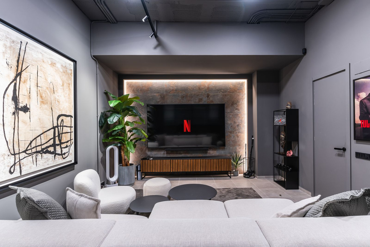 Parmi les autres atouts, citons une salle de cinéma privée, un hall d'entrée impressionnant avec double hauteur sous plafond, le chauffage au sol, la climatisation, des finitions haut de gamme, un garage fermé pour deux voitures et une buanderie séparée. L'espace de la salle de cinéma pourrait facilement être transformé en une cinquième chambre avec salle de bains attenante.