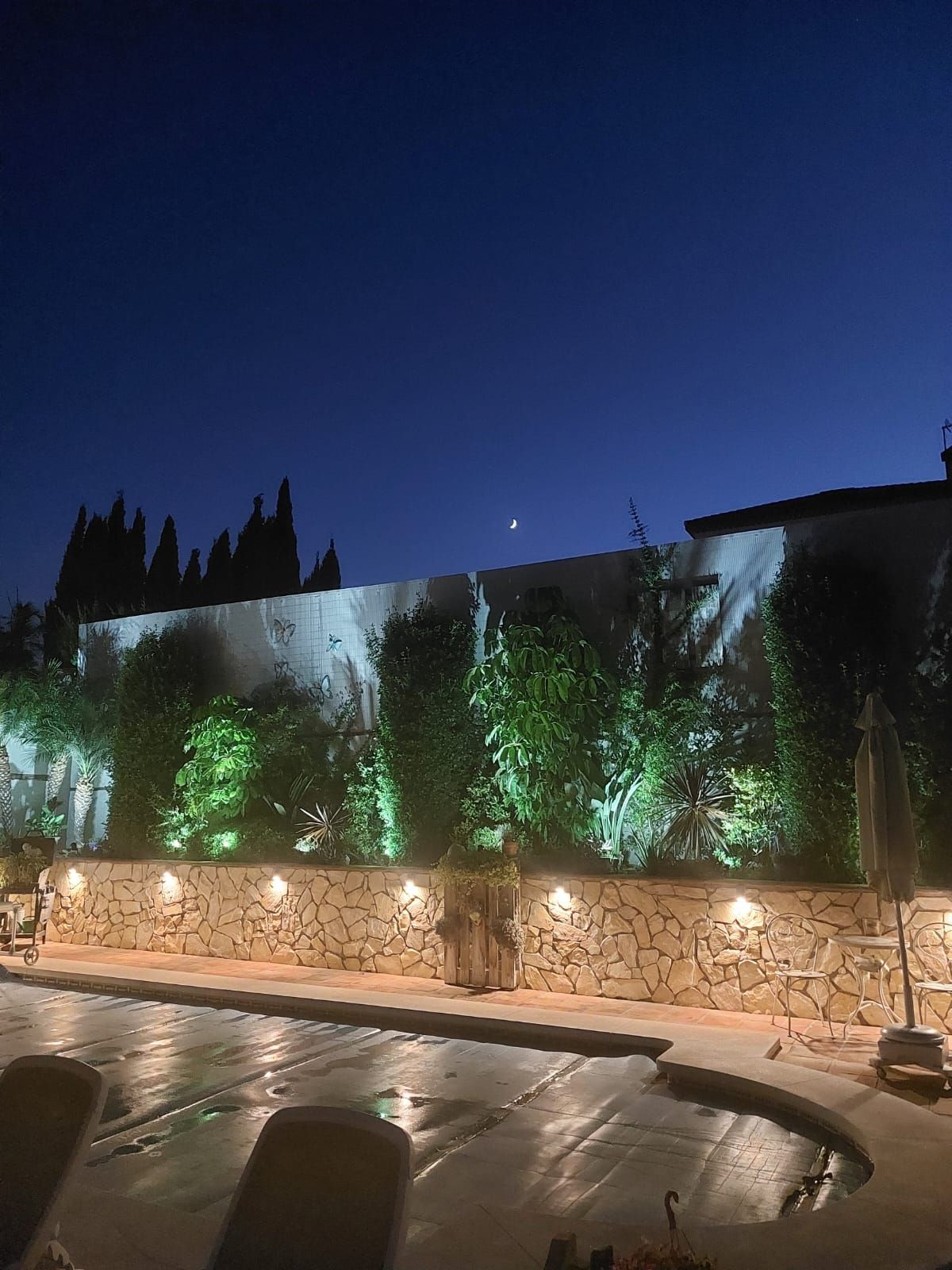 À l'extérieur, vous découvrirez un jardin privé et sécurisé, entièrement aménagé et nécessitant peu d'entretien, doté d'un système d'irrigation moderne. La piscine couverte et la douche sont chauffées, un atout rare qui témoigne du soin apporté par les propriétaires à cette propriété. La cuisine d'été, équipée d'un barbecue, est un véritable plus utilisable toute l'année. Enfin, un local de rangement pratique permet de stocker outils, engrais et bois de chauffage.
