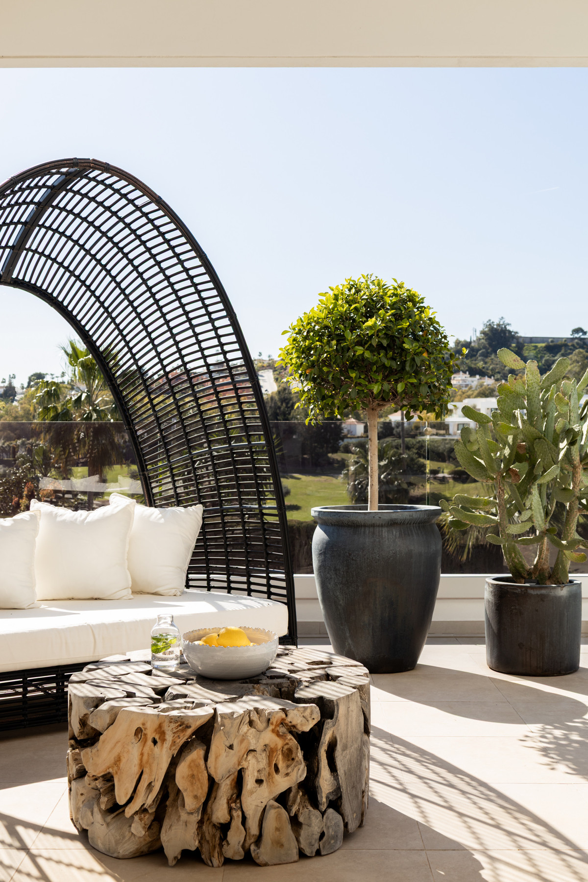 Villa contemporaine située au cœur de la prestigieuse Vallée du Golf de Nueva Andalucía, bénéficiant d'une orientation ouest privilégiée avec vue sur le célèbre golf de Los Naranjos. Répartie sur trois niveaux, la résidence offre des panoramas exceptionnels sur les fairways impeccablement entretenus et le paysage environnant, créant une atmosphère sereine et raffinée.