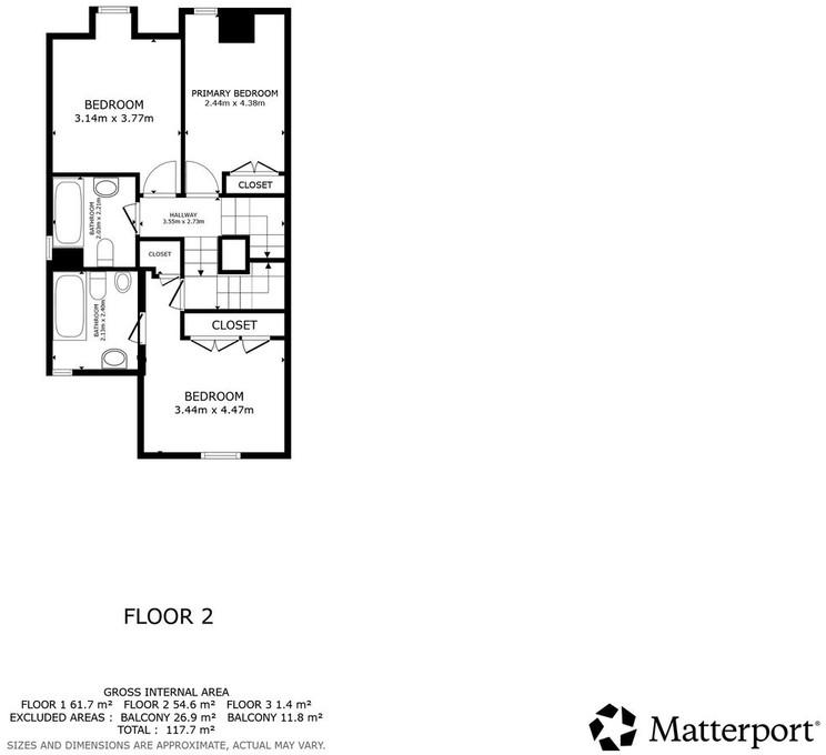 À l'étage, trois chambres doubles de belles dimensions (dont une avec salle de bains privative) dotées de placards intégrés du sol au plafond offrent un hébergement confortable aussi bien pour les familles que pour les vacanciers.