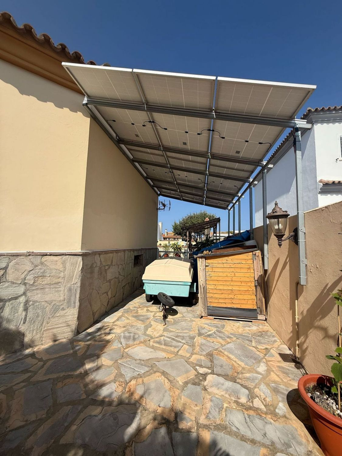 Véranda couverte avec cuisine-salle à manger et grand garde-manger