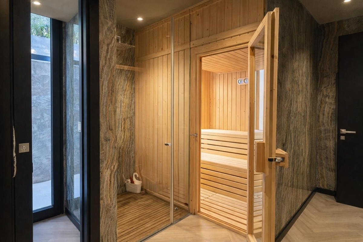 La villa comprend 3 chambres spacieuses et 5 salles de bains luxueuses, aux finitions haut de gamme, avec un design raffiné, un mobilier sur mesure et des matériaux de première qualité. De vastes baies vitrées laissent entrer une abondante lumière naturelle, créant des intérieurs lumineux et ouverts et une transition harmonieuse vers l'extérieur.