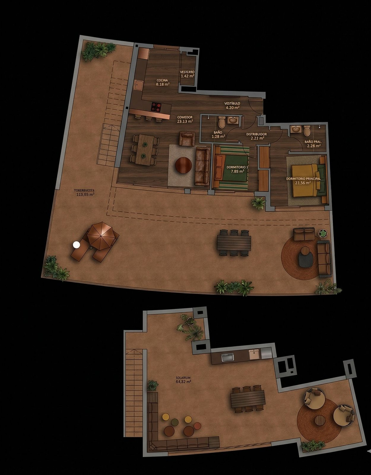 Situé au-dessus des parcours verdoyants du Calanova Golf Club, ce penthouse d'exception est un véritable bijou architectural. Avec ses 87 m² d'intérieurs raffinés et son extraordinaire terrasse panoramique de 194 m² répartie sur deux niveaux, la résidence offre une vue imprenable sur la mer. Son orientation sud-ouest garantit une lumière dorée et des panoramas à couper le souffle, du lever au coucher du soleil.