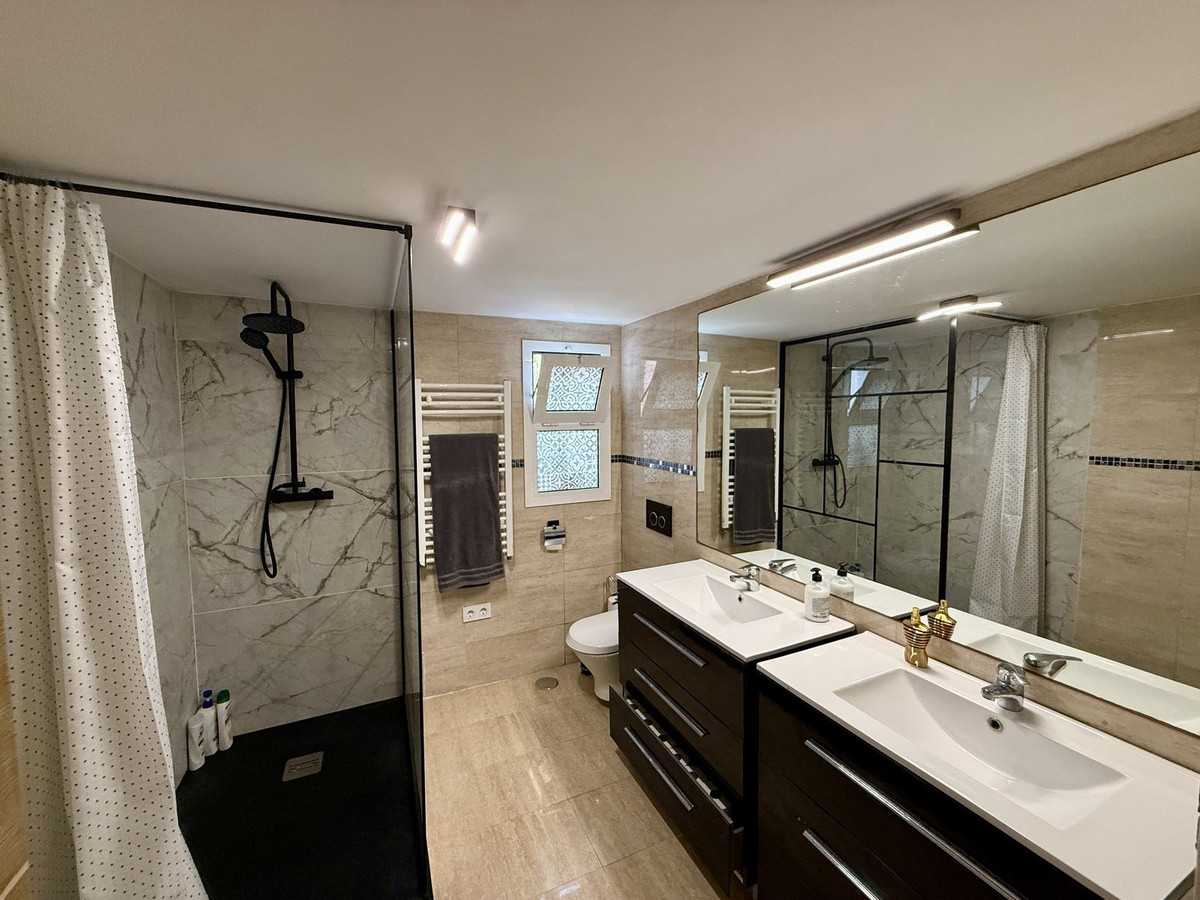 L'un des atouts majeurs de cette maison est son appartement indépendant aménagé au sous-sol. Cet espace généreux comprend deux chambres, une cuisine, un séjour et une salle de bains, ainsi qu'un accès direct à la piscine et à sa propre terrasse privative. Il est idéal pour accueillir des invités, la famille ou offre un excellent potentiel locatif.
