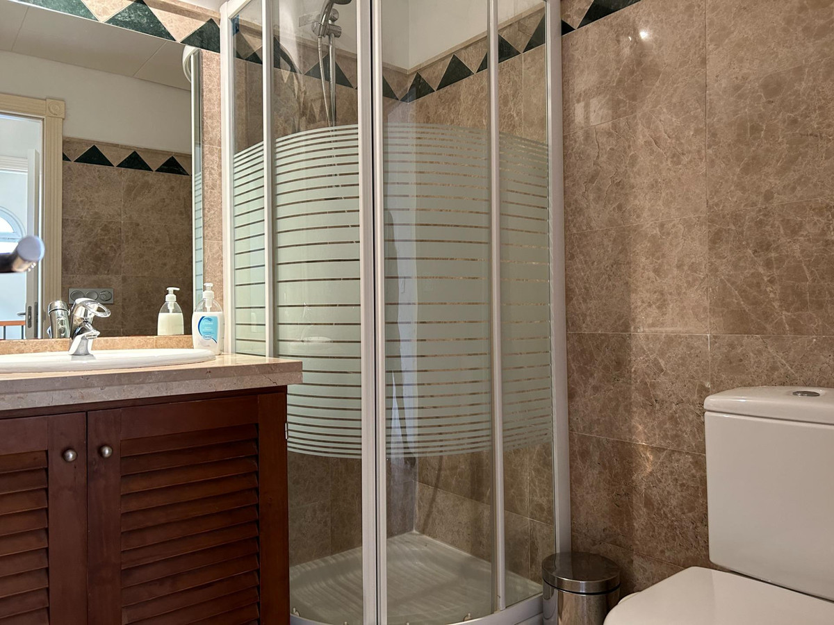 Maison individuelle en première ligne de golf, au sein du club San Roque, avec jardin privé et piscine commune, orientation sud-ouest. Cette magnifique maison dispose de 3 dortoirs et 3 places de parking, d'un salon avec cheminée, d'un jardin privé privatif ainsi que de jardins communs et d'une grande piscine commune. Elle comprend une grande cuisine avec salle à manger et une buanderie séparée. Avec 70 m² de jardin privé et un parking couvert à l'arrière de la maison. En plus du superbe jardin privé, elle bénéficie d'un solarium offrant une vue exceptionnelle. La maison est exposée sud-ouest depuis le salon et le solarium assure un confort optimal en hiver. Elle est équipée de la climatisation réversible, du chauffage au sol dans les salles de bains et est entièrement meublée et équipée. Sols en marbre et grande luminosité.