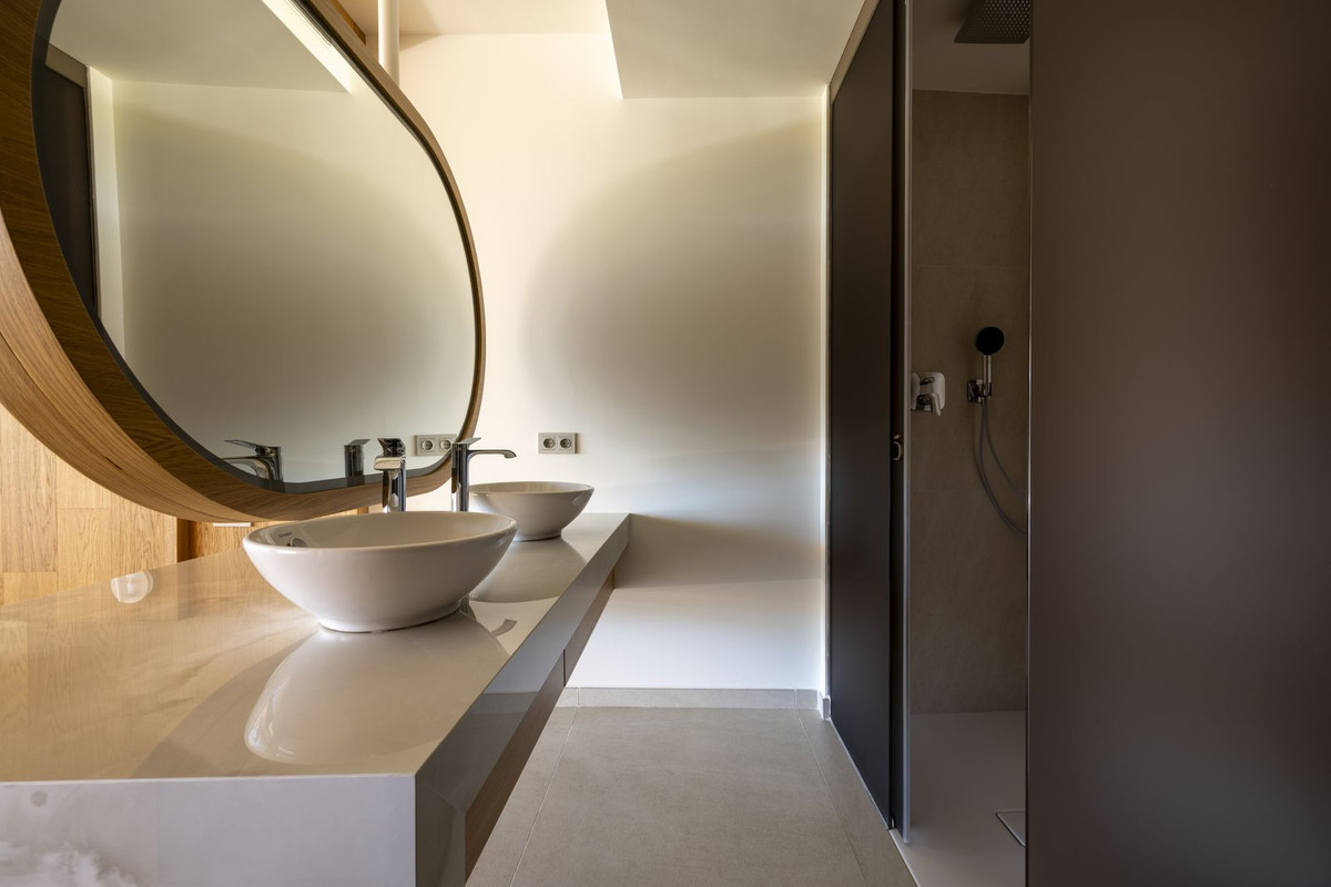 L'intérieur allie une architecture contemporaine épurée à des finitions chaleureuses et haut de gamme. Les baies vitrées créent une transition harmonieuse entre l'intérieur et l'extérieur, optimisant ainsi l'espace et la luminosité naturelle.