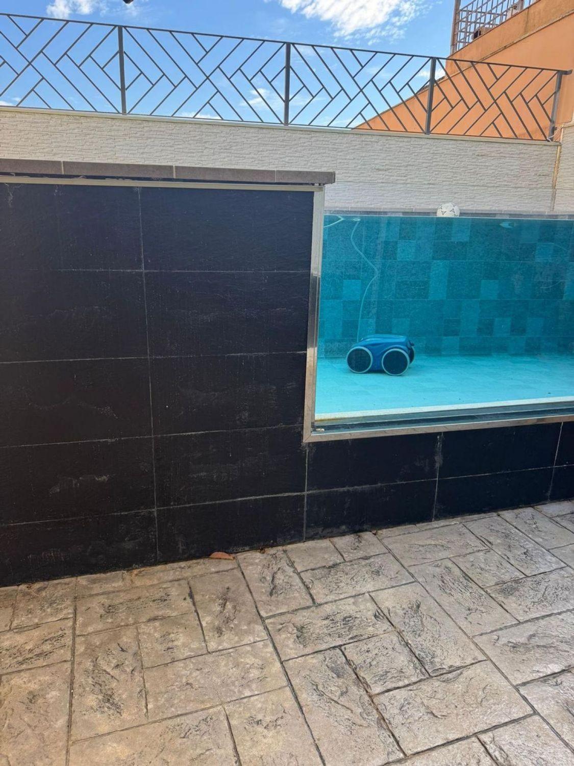 Outdoor area with printed concrete and a designer saltwater pool, perfect for relaxing or sharing moments with family and friends.