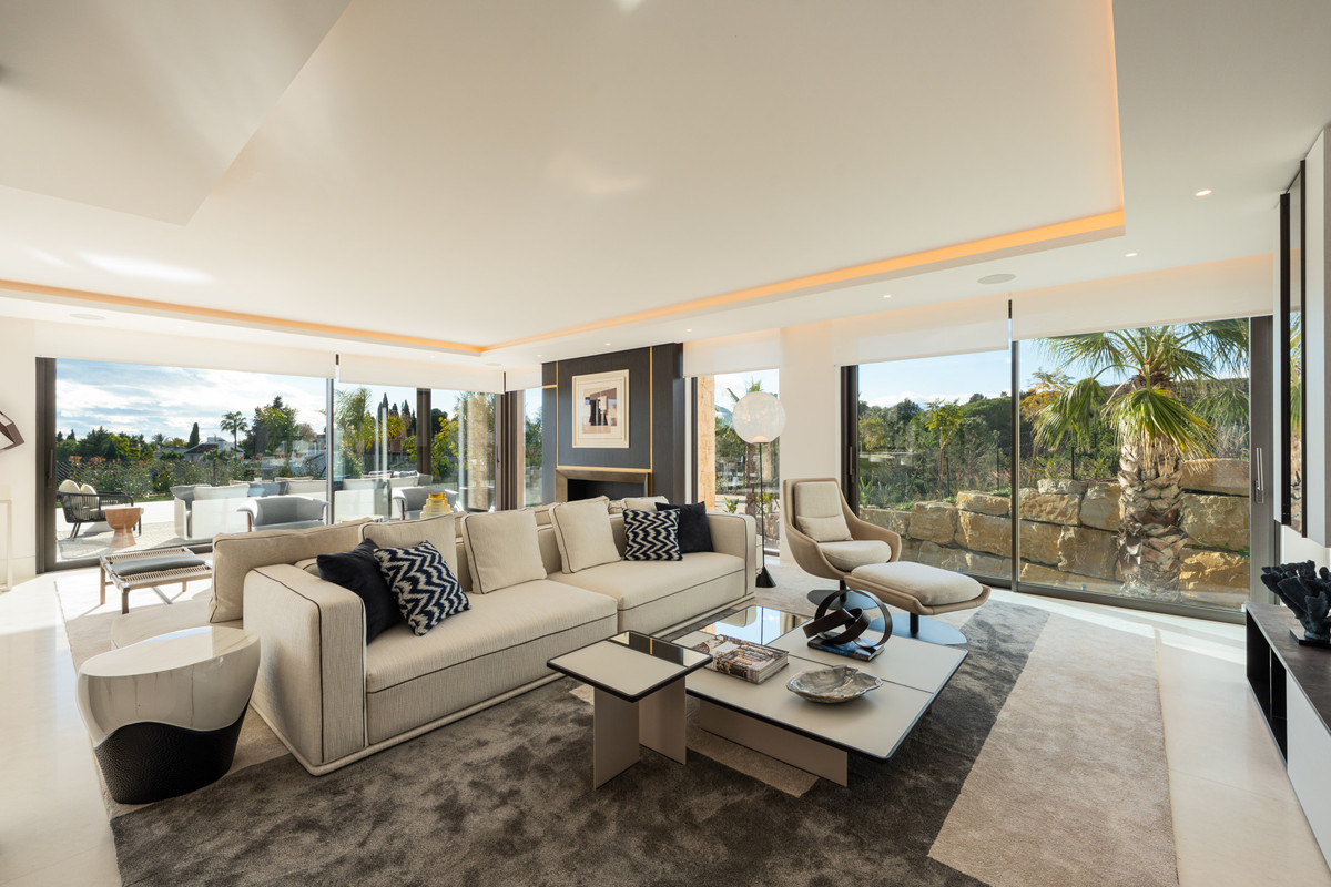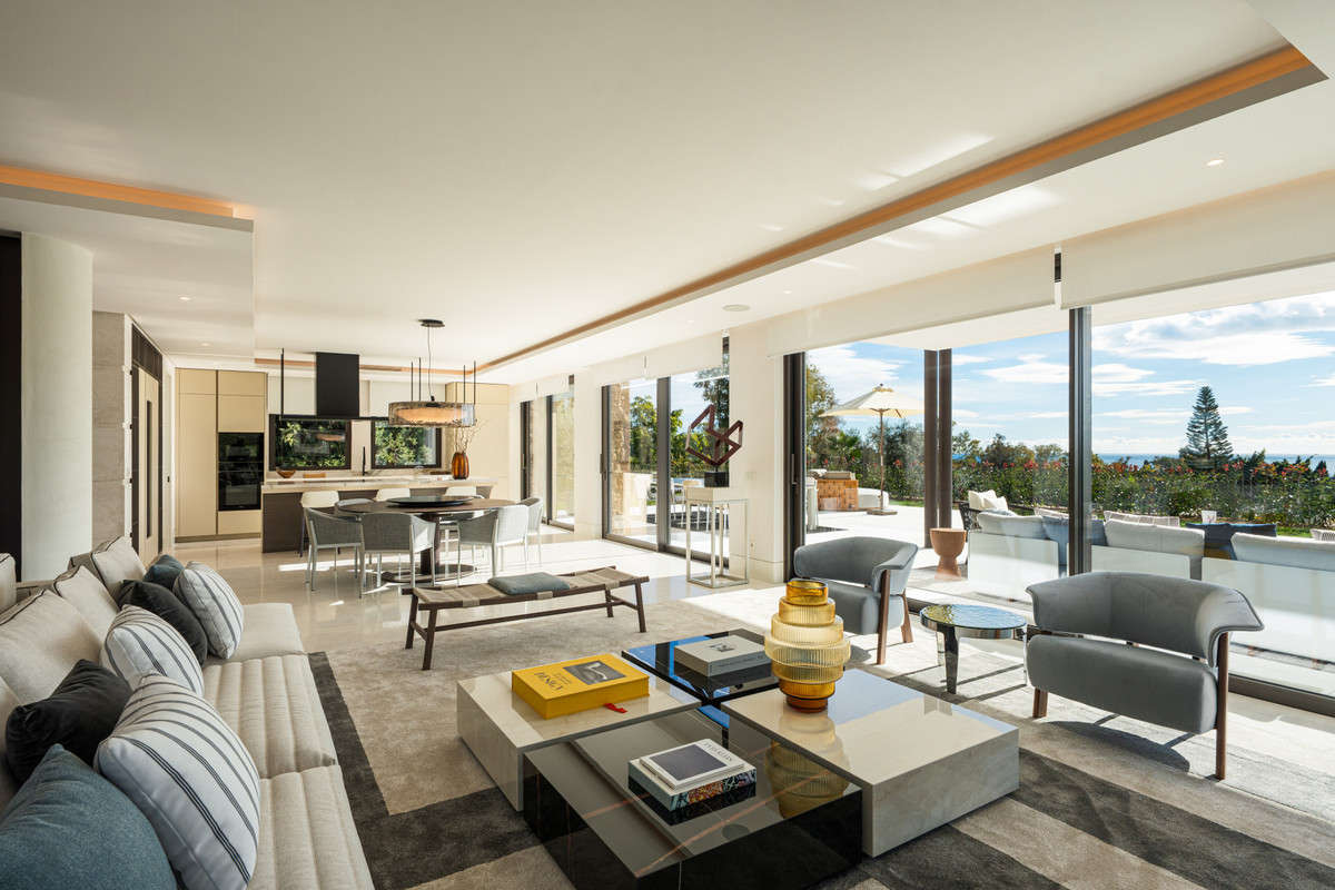 Cette villa de luxe exceptionnelle, située au sein du Marbella Hill Club, allie avec élégance raffinement et confort absolu, offrant un style de vie exclusif dans l'un des quartiers les plus prestigieux de Marbella. Les intérieurs sur mesure, signés Pedro Peña, sont conçus spécifiquement pour cette résidence, créant une atmosphère à la fois sophistiquée et chaleureuse, empreinte d'intemporalité et d'originalité.