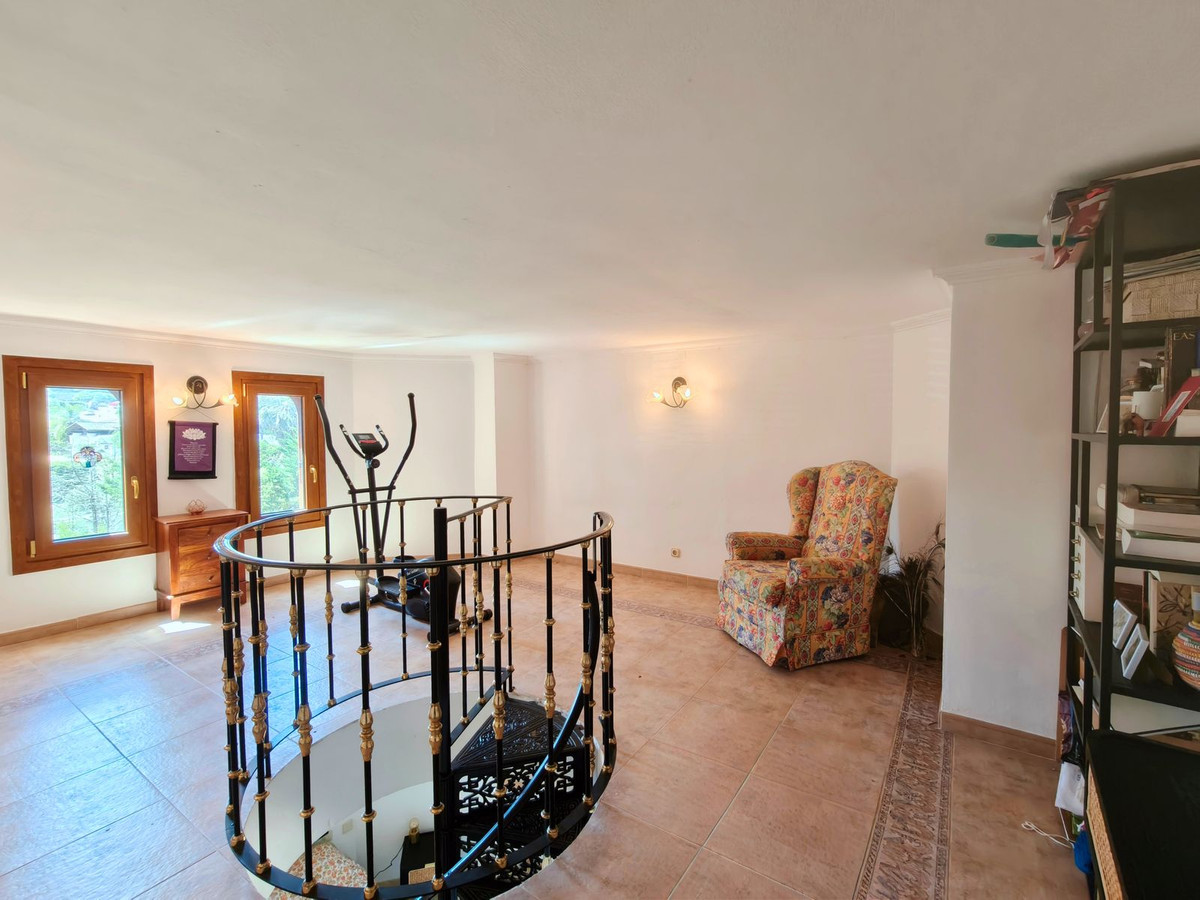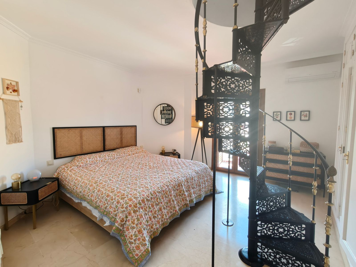 À l'étage, vous trouverez deux chambres spacieuses, chacune avec sa propre salle de bains et ses placards intégrés. Depuis l'une des chambres, un escalier en colimaçon mène à une troisième pièce polyvalente. Idéale comme chambre supplémentaire, bureau, salle de sport ou espace créatif adaptable à votre style de vie.
