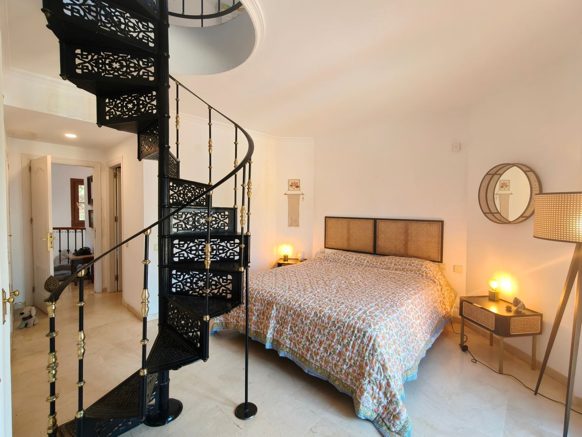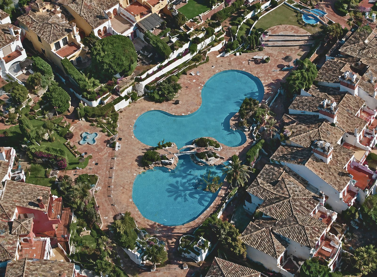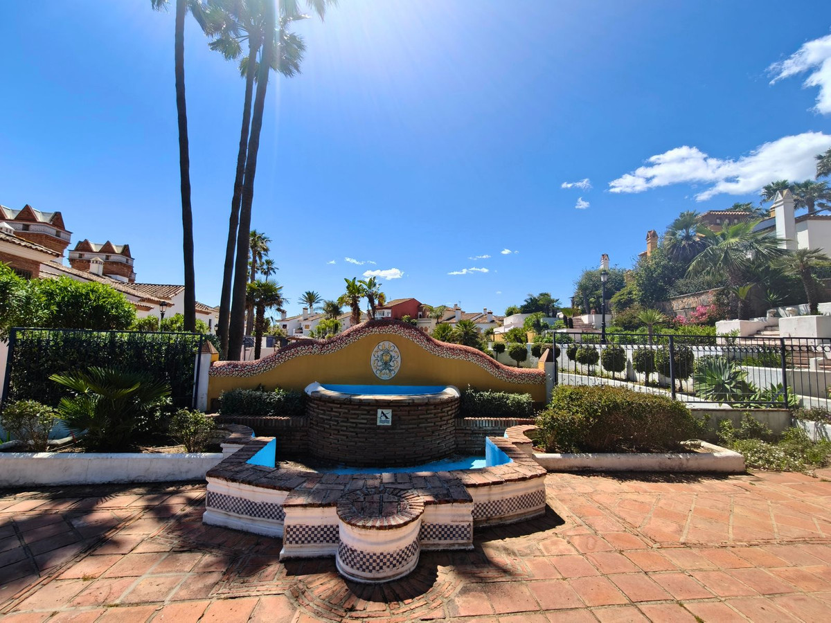 Le complexe résidentiel est un atout majeur : une résidence sécurisée et fermée, entourée de verdure luxuriante, offrant une vue imprenable sur la mer et une grande piscine d'eau salée. Les résidents bénéficient d'un accès direct à la plage, faisant de cette maison un véritable havre de paix en bord de mer. Idéalement située à proximité des commerces, restaurants, transports en commun et bars de plage traditionnels (chiringuitos), cette propriété offre un parfait équilibre entre tranquillité et praticité.