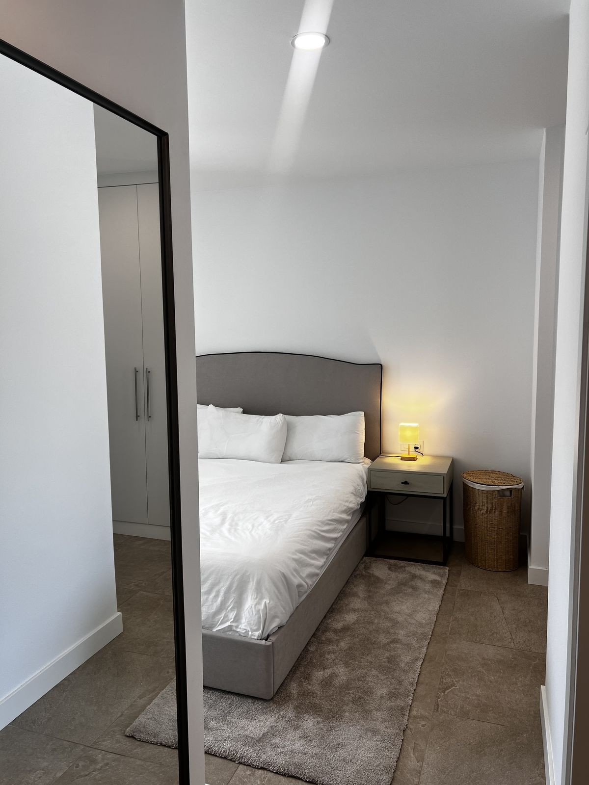 À l'intérieur, l'appartement comprend une cuisine moderne entièrement équipée, des fenêtres à double vitrage, des placards intégrés, le Wi-Fi, des stores électriques et une climatisation performante. La chambre principale dispose d'une salle de bains privative, tandis que les autres chambres offrent la possibilité d'accueillir des invités ou d'aménager un bureau. L'ensemble est lumineux, contemporain et prêt à vous accueillir.