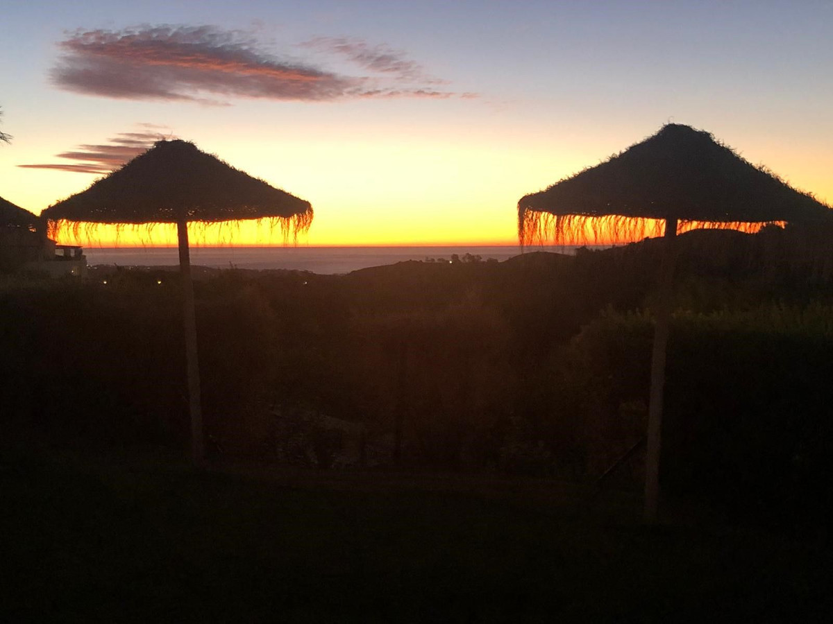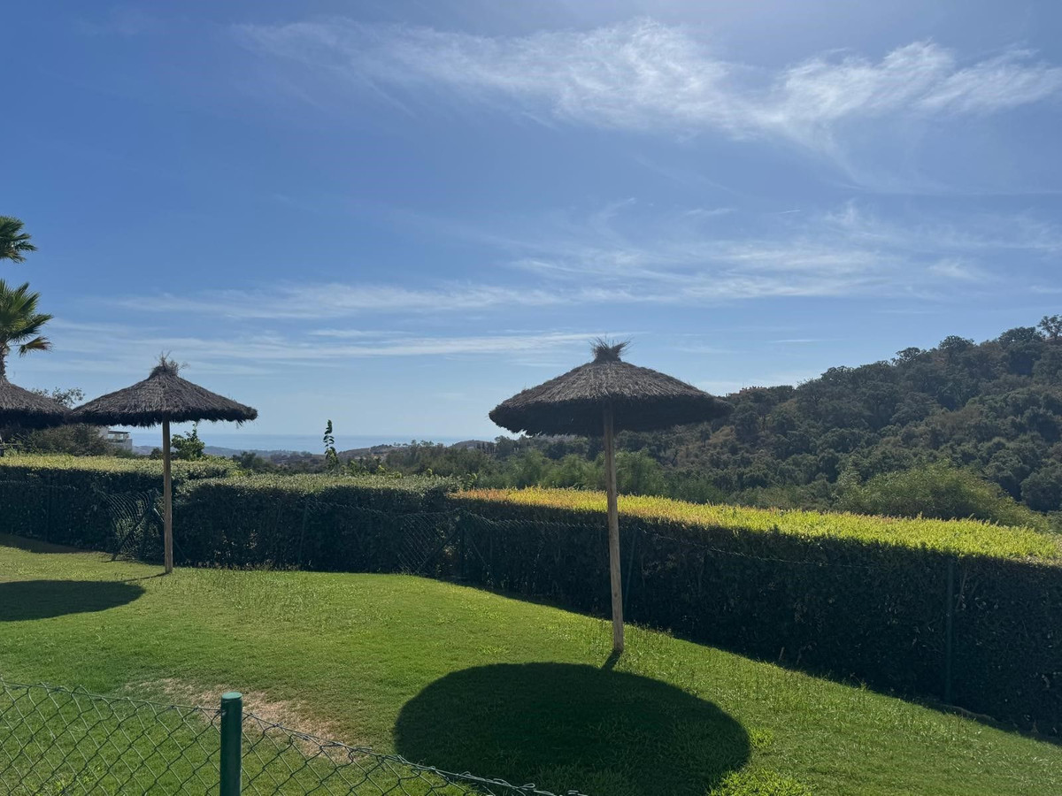 Ce superbe appartement d'angle de trois chambres, situé au rez-de-chaussée, se trouve dans la résidence La Floresta de la Mairena, un complexe résidentiel niché dans un cadre magnifique, classé réserve naturelle par l'UNESCO, à seulement 7 km de la plage d'Elviria, à l'est de Marbella. Entourée d'une forêt de chênes-lièges et offrant une vue imprenable sur la mer, la résidence bénéficie d'une atmosphère paisible et sereine, à l'écart de la circulation, tout en étant parfaitement desservie par les axes routiers menant au centre de Marbella. La Floresta de la Mairena est située à proximité de la célèbre German School et à quelques minutes à pied du golf d'El Soto. Les résidents de La Floresta de la Mairena bénéficient d'un accès gratuit au golf d'El Soto (9 trous, par 3), qui comprend également une salle de sport, un sauna, un padel et un club-house avec restaurant. À 5 minutes en voiture, vous pourrez également profiter des prestigieux golfs de La Cala (36 trous) et de Santa Maria. La résidence dispose d'une piscine pour adultes et d'un bassin pour enfants, de jardins communs et d'un parking extérieur. L'appartement comprend trois chambres, deux salles de bains, un vaste séjour avec accès direct à une terrasse couverte et un jardin privatif, ainsi qu'une cuisine moderne ouverte sur le séjour. Vue imprenable sur la forêt et la mer. Place de parking privative et appartement entièrement meublé ! À visiter absolument.
