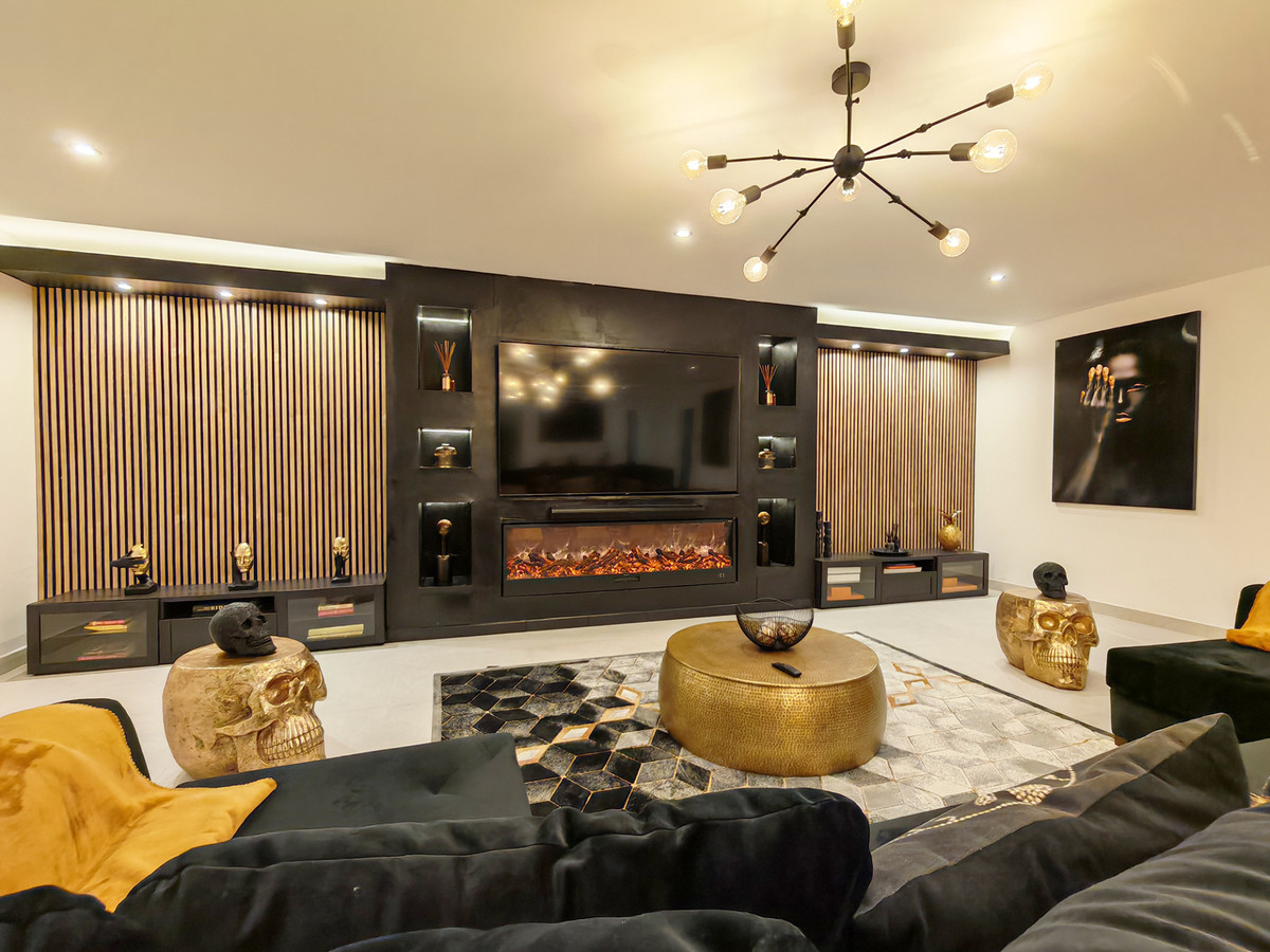 Équipements : Terrasse couverte, Placards aménagés, Terrasse privée, Solarium, Wi-Fi, Salle de sport, Salle de jeux, Appartement d’invités, Débarras, Buanderie, Salle de bains attenante, Jacuzzi, Barbecue, Double vitrage, Domotique, Sous-sol