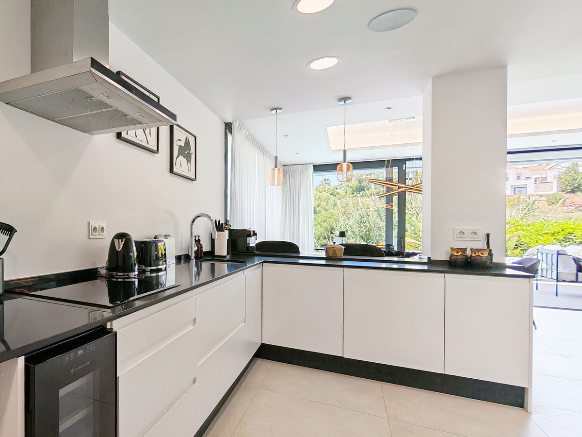Villa à vendre à La Resina Golf, Estepona, offrant 5 chambres, 4 salles de bains (dont une suite parentale), une orientation ouest, une piscine privée, un garage double et un jardin privatif. Surface habitable : 308,46 m², terrain : 521,21 m², surface utile : 308,46 m², terrasse : 95 m². Ce logement offre les prestations suivantes : accès direct au golf, climatisation, entièrement meublé, cuisine équipée, buanderie, cheminée, jacuzzi, sous-sol, chambre d’amis, débarras, salle de sport, alarme, solarium, entrée sécurisée, double vitrage, interphone vidéo, tout neuf, salle à manger, barbecue, service de sécurité 24h/24, toilettes invités, terrasse privée, cuisine équipée, salon, bureau, vue sur la montagne, vue sur le golf, piscine chauffée, système d’irrigation automatique, domotique, système audio surround Dolby, buanderie, internet Wi-Fi, terrasse couverte, placards intégrés, vue sur le jardin, vue sur la piscine, vue panoramique, salle de cinéma, chauffage au sol (salles de bains), cave à vin, à proximité d’une aire de jeux pour enfants, à proximité de la mer/plage, à proximité du golf, terrasse non couverte, salle de jeux, portes vitrées, salle à manger séparée, cuisine ouverte, balcon, système de refroidissement au plafond, à proximité des écoles, appartement d’invités, au sein du complexe de golf, bureau et animaux domestiques admis.