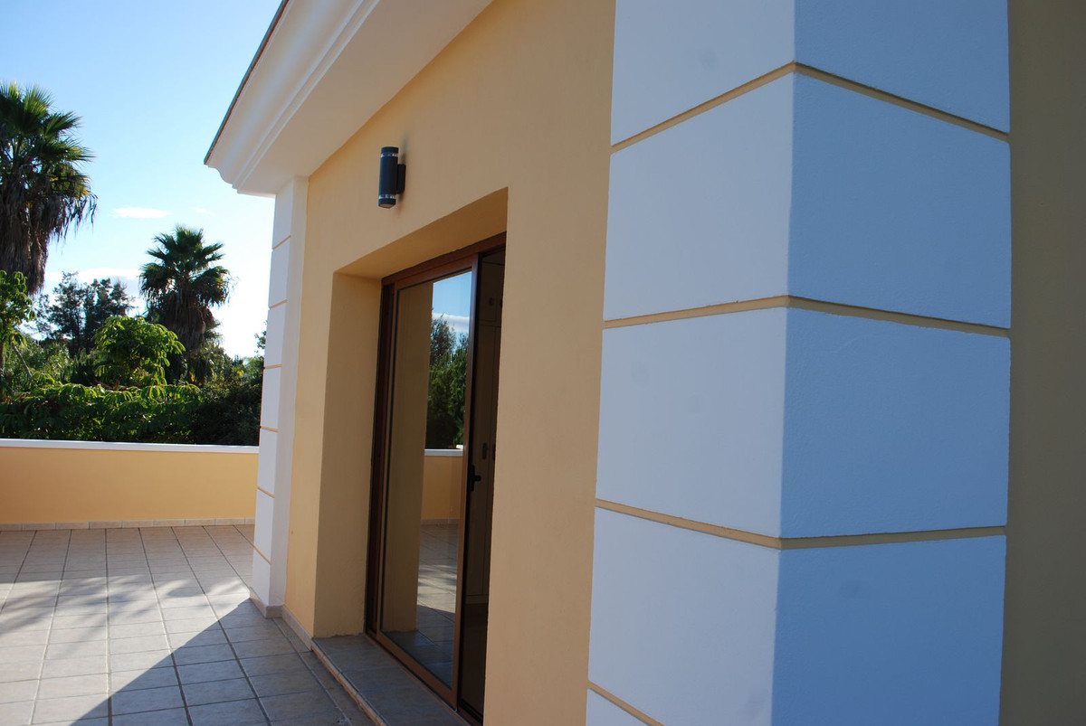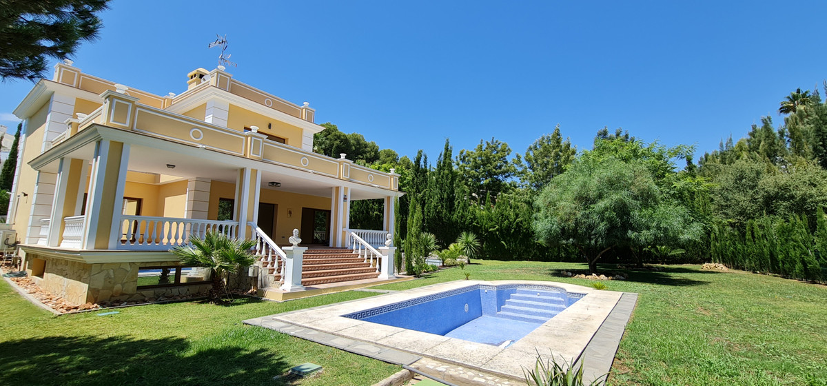 Luxury villa built on two floors plus a basement and a large garage for several cars, located in Hacienda Las Chapas, near Marbella and Malaga airport and Malaga city. Close to all services and near the beach! The villa is in perfect condition, offering four bedrooms en suite and a guest toilet. There is one bedroom en suite on the ground floor and three bedrooms with their own bathroom on the first floor. The villa has been completely renovated recently, offering an air conditioning system in all rooms and with underfloor heating in each bedroom. Large living room with access to the terrace and the garden with a pool. In addition a large and modern kitchen with all appliances. Terraces all around.