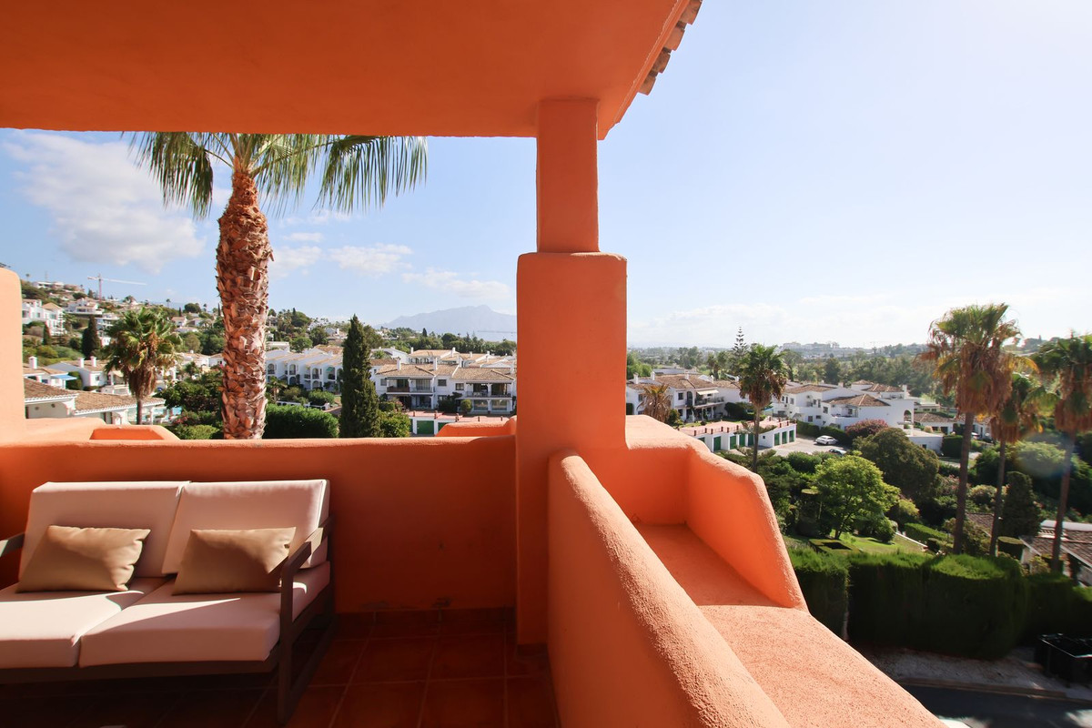This duplex penthouse actually spans three levels, with large terraces on the south, east and west sides. Providing panoramic views of the La Concha mountain, the swimming pool and El Paraíso Golf Course. The top floor is dedicated exclusively to the master bedroom, complete with an ensuite bathroom and two terraces on either side, as well as exclusive access to an additional roof terrace, (there is a possibility of adding a spiral staircase to access this terrace as there are "exclusive rights of usage" stated in the title deeds). Inside, the property features a fully fitted modern kitchen with appliances and a spacious open plan living-dining room. It also includes two elegant guest bedrooms and a beautiful guest bathroom.