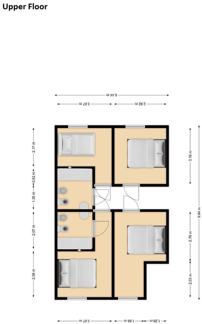 ➡️ Upper floor: 4 bedrooms and 2 bathrooms (one en suite)