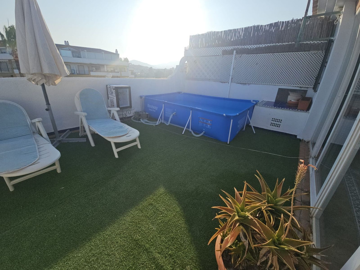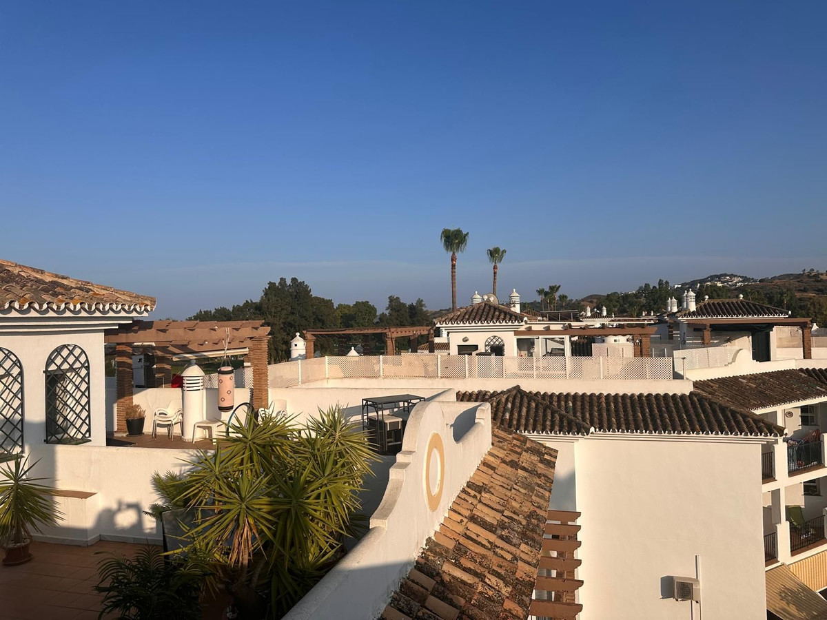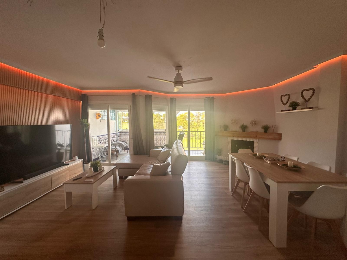 Discover this spectacular frontline golf penthouse. With a completely renovated and tastefully decorated design, this home features two spacious bedrooms and two full bathrooms, perfect for enjoying comfort and style. The kitchen is open to the living room, offering cozy and bright spaces. It also has a fireplace. The living room opens onto a charming terrace where you can relax while enjoying the stunning views of the golf course.