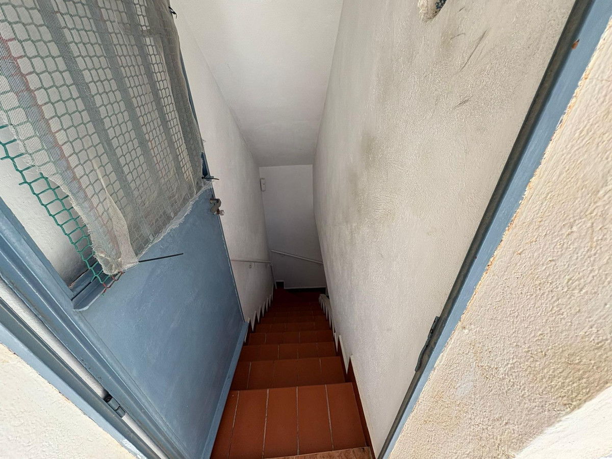 The property is distributed over two floors plus a spacious rooftop terrace. On the ground floor, you'll find one bedroom, a small bathroom, a cozy living room, and a functional kitchen with access to a small patio. The second floor features two bright bedrooms and a full bathroom. The terrace, approximately 45 m2, includes a laundry room and boasts beautiful sea views, making it the perfect space to relax, enjoy outdoor dining, or create a chill-out area.