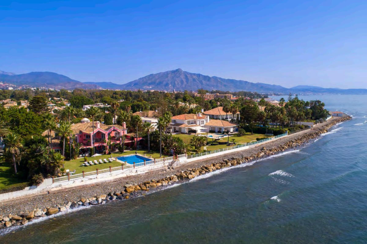 Introducing a classic beachfront villa in Casasola, one of the most prestigious residential areas on Estepona’s New Golden Mile. This property stands out for its prime seafront position, generous plot size and timeless elegance, offering a unique opportunity in today’s luxury market.