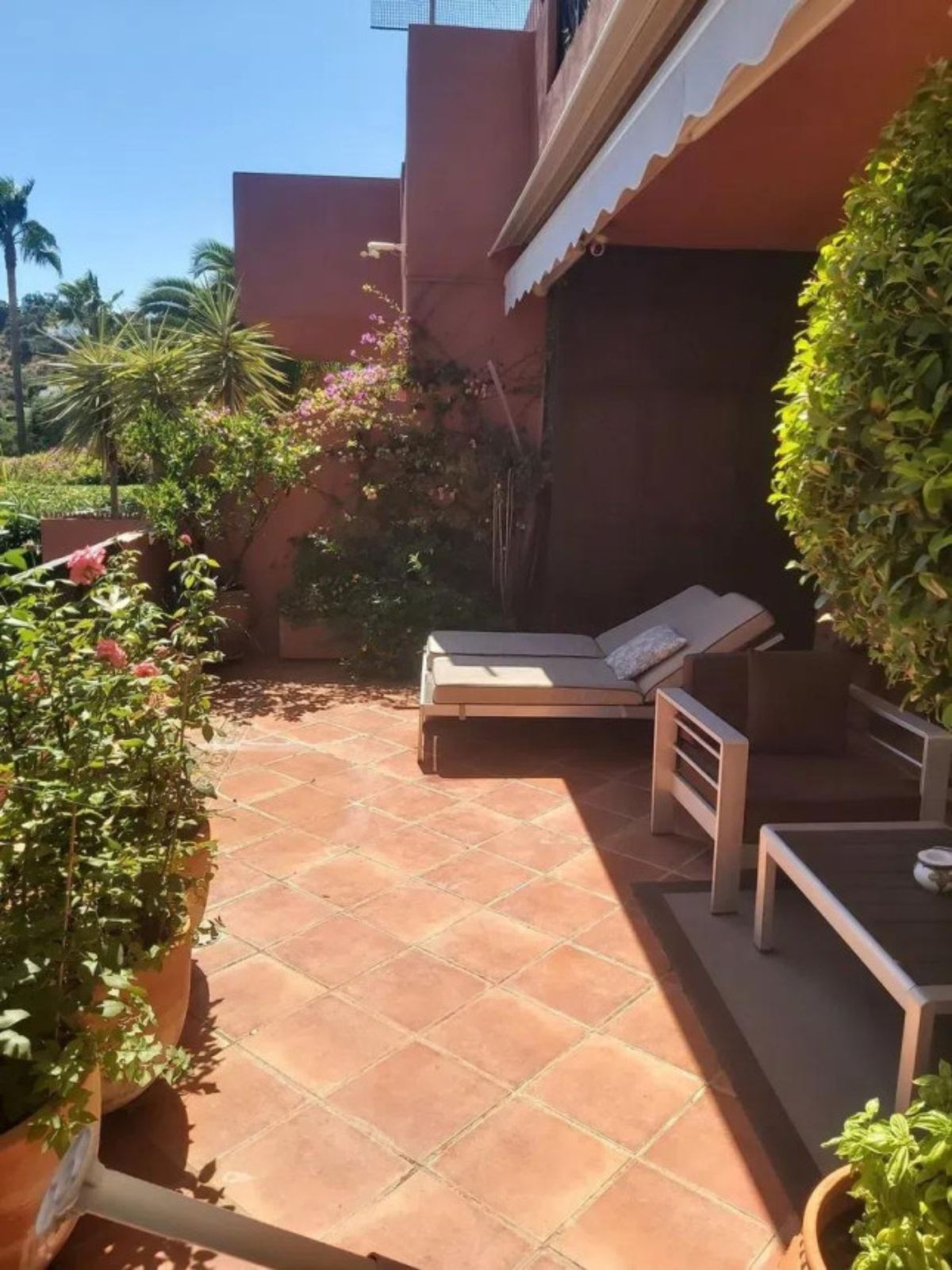 a highly sought-after area where no more construction is allowed: exceptional apartment with 3 spacious bedrooms, with east-west orientation and panoramic views of the sea and the hills of Mijas Costa. It is currently being connected to an internal solar plant. This beautiful apartment is located in the gated community , in a pure Andalusian style, with lush and flowery gardens. It offers a spacious, modern and very bright living space with numerous windows that open to nature and a fantastic sea view. The kitchen is open concept. It has 3 spacious bedrooms and 2 bathrooms, with a constructed area of approximately 200 m², including 2 terraces of approximately 45 and 10 m². This property includes a storage room and a private parking space. The urbanization consists of only 45 apartments with 2 swimming pools, the largest of which is an infinity pool with incredible panoramic views of the entire coast. The property is located just 7 minutes (6 km) by car from Elviria. This privileged location, very close to the famous German School, is very quiet and at the same time offers all services. There are several golf courses less than 20 minutes away by car, and Marbella is only 18 minutes away.