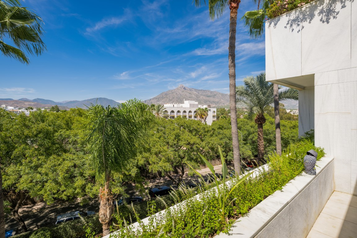 On the upper floor, there is a spectacular solarium with a private pool, dining and lounge areas, all boasting beautiful views of the most emblematic mountain of the Costa del Sol.