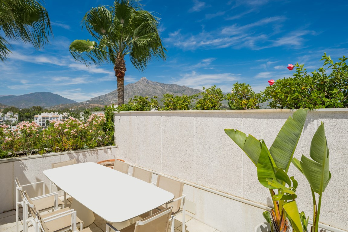 The penthouse is part of a gated community with 24-hour security, meticulously maintained subtropical gardens, a gym, spa, lagoon-style pool, and direct access to the beach. All this is just steps away from luxury boutiques, gourmet dining options, and the vibrant atmosphere of Puerto Banús.