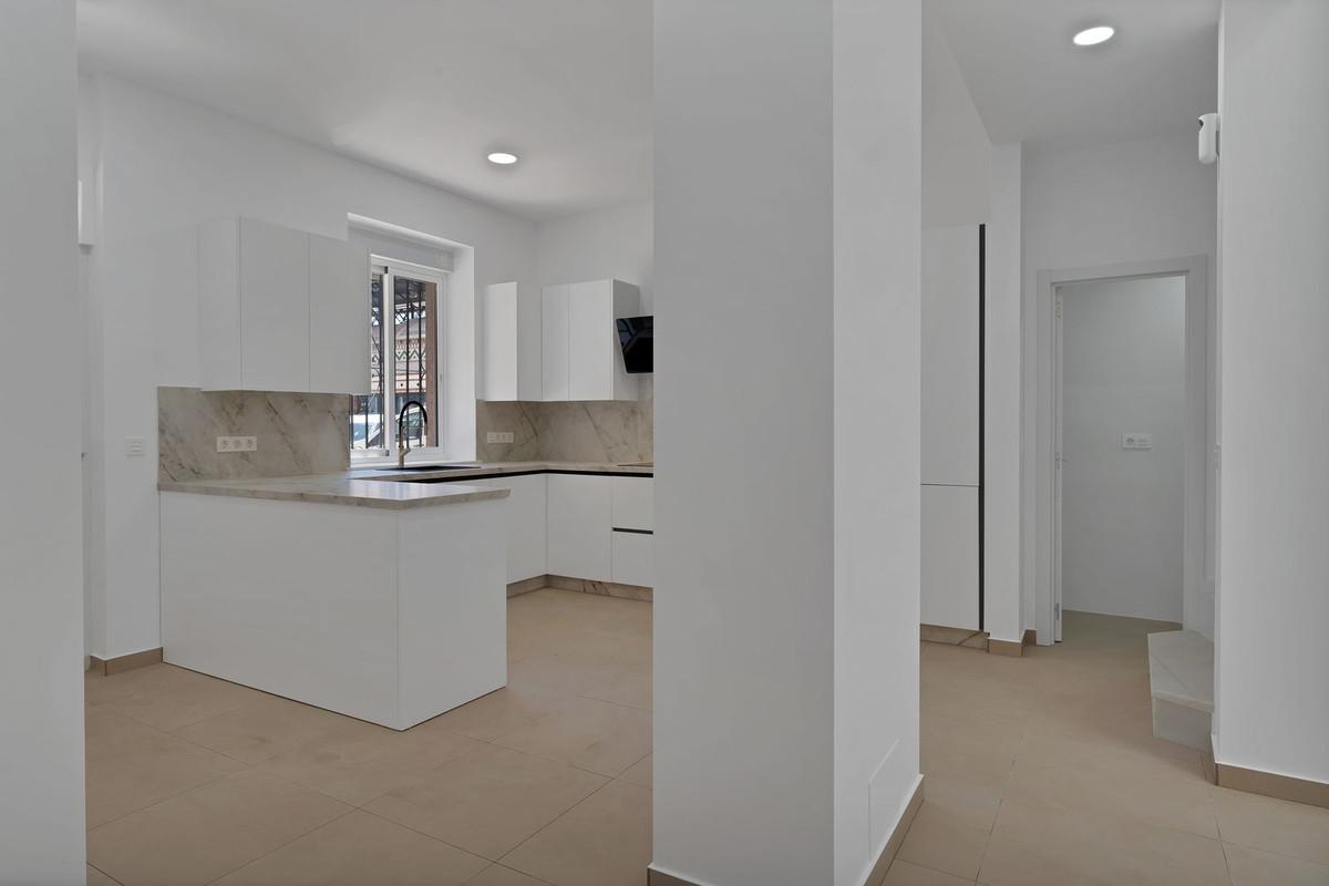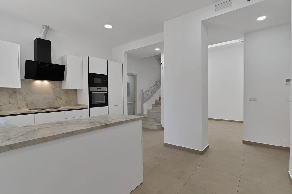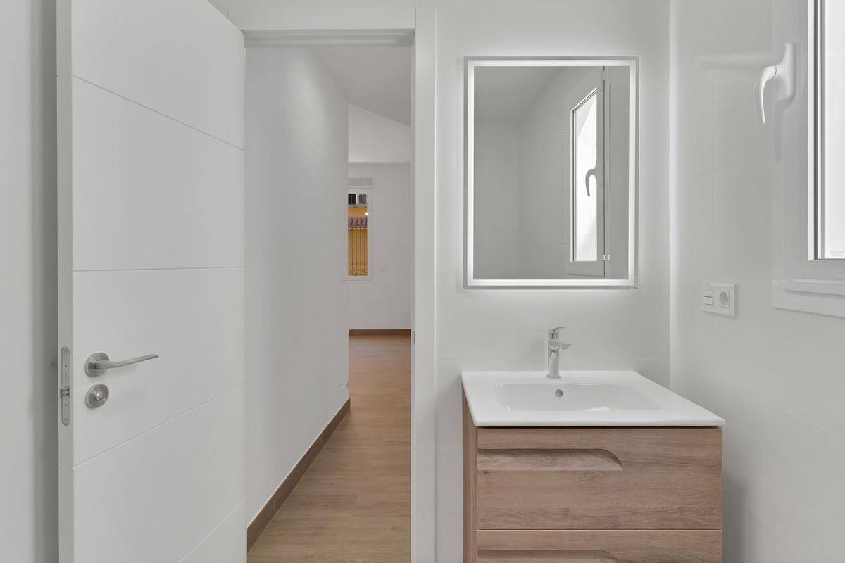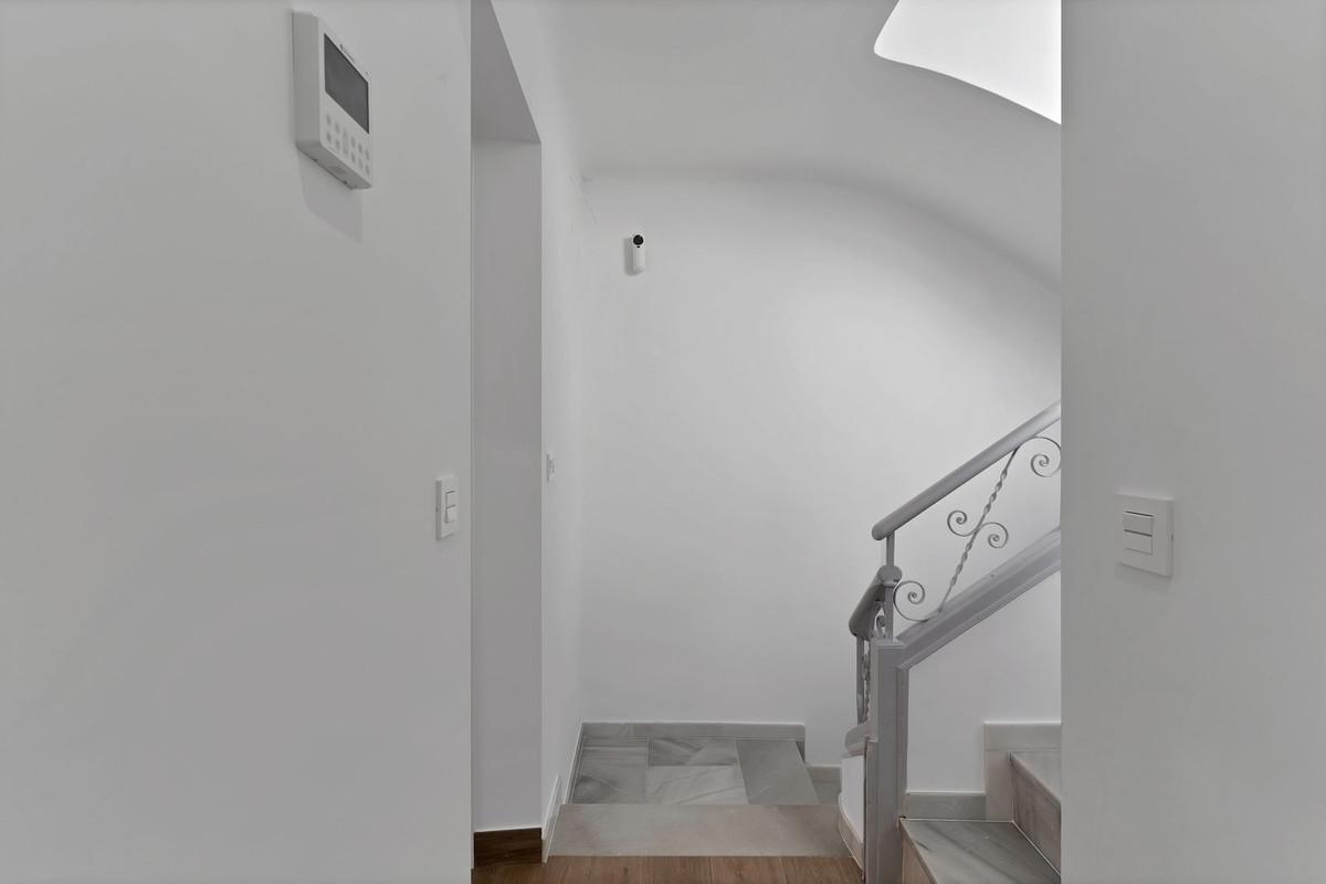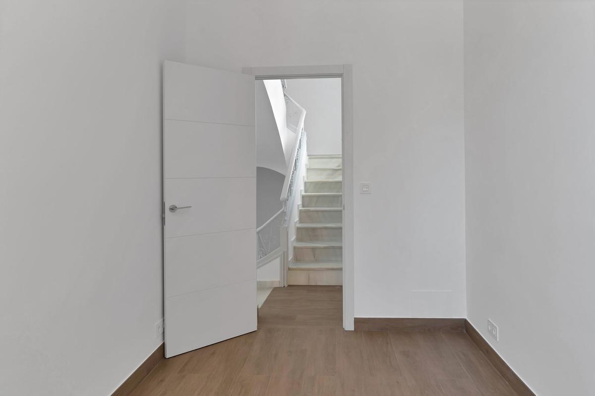 Discover this magnificent, fully renovated townhouse located on Salamanca's market square in the heart of Malaga. With a floor area of 1,700 sq ft, this property combines the old-world charm of a 1940s building with unparalleled modern comfort. Ideal for large families or those who love to entertain, it has six spacious bedrooms, including three elegant suites. Each bedroom is equipped with built-in wardrobes and closets, offering optimal storage space.