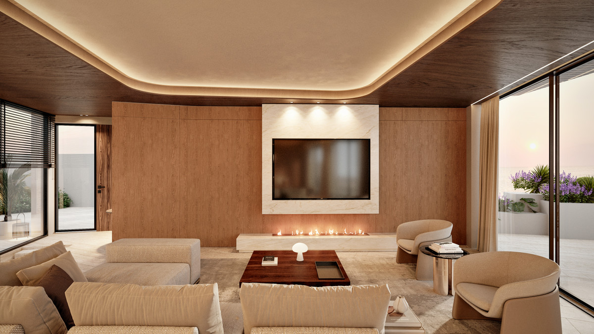 The spacious and luxurious exterior spaces have been designed for maximum enjoyment. Several terraces stretch the length of the property, providing perfect areas for al fresco dining or relaxing while taking in the spectacular surroundings. The private terrace is home to an infinity swimming pool including a cozy den with outside fireplace.