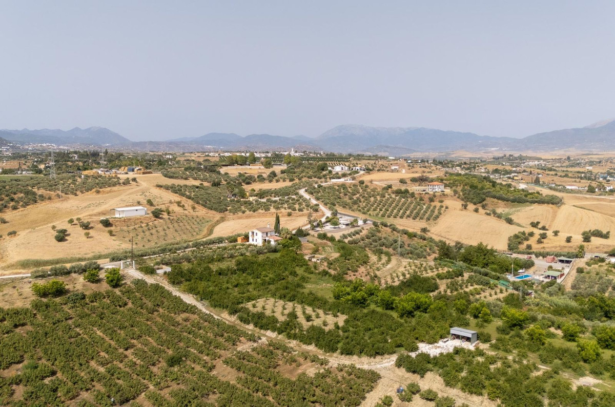Wonderful finca with almost 50,000 m2 of land, totally fenced, with 5 different entrances, water from its own well plus irrigation water from the canal such us two algibes/ water deposits. T he land is divided into several terraces and planted mainly with pear and pomegranate trees, as well as olive, walnut, lemon, and orange trees. Within the farm, a two-story house was built in 2005 which has three bedrooms, two bathrooms, a living room with a fireplace, and a fitted kitchen. A spacious covered porch entrance and a separate 30 m2 storage room. An ideal property for lovers of the countryside and tranquility, 25 minutes from Malaga and 10 minutes from the town of Cártama.