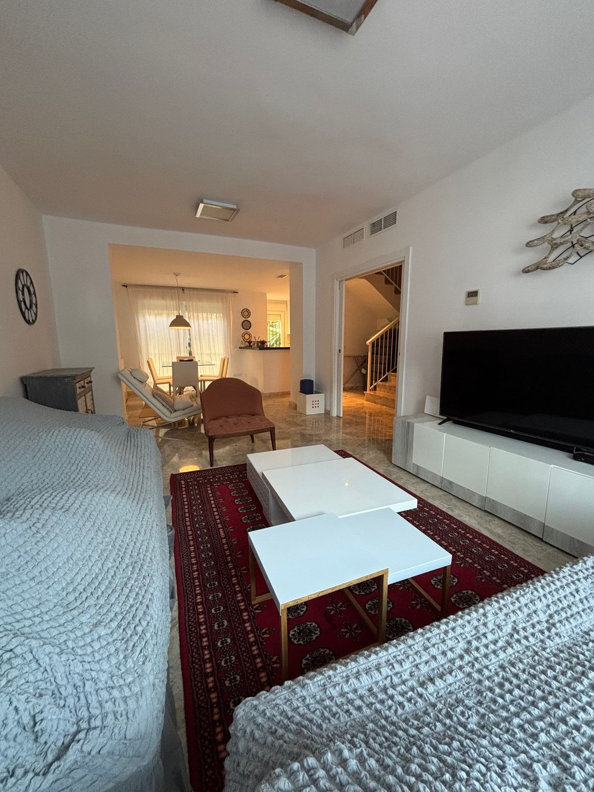 Built in 2015, the property is distributed over two floors and features 3 spacious bedrooms and 3 full bathrooms. The main floor stands out for its open-concept design, with a modern kitchen integrated into the living-dining area, creating a spacious and cozy atmosphere with direct access to the private garden—ideal for enjoying Marbella’s climate all year round. This floor also includes a full bathroom.