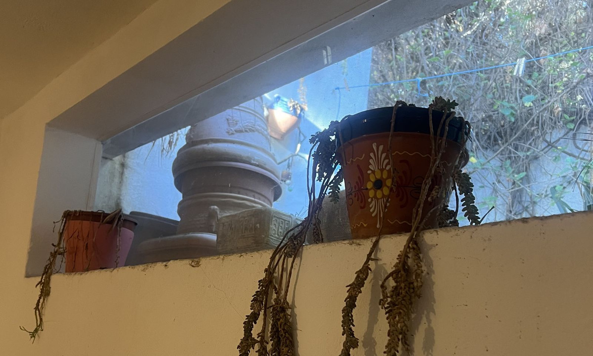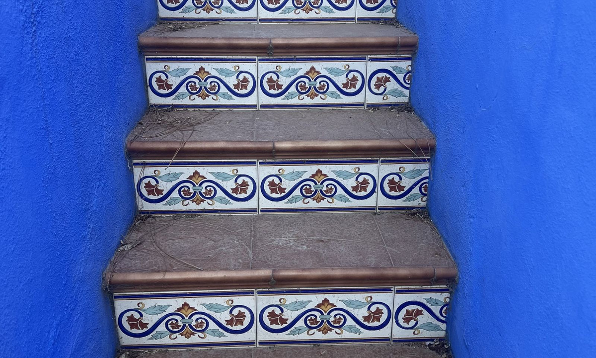 A small garden patio with Andalusian tiles, waiting to be transformed into a tranquil outdoor haven