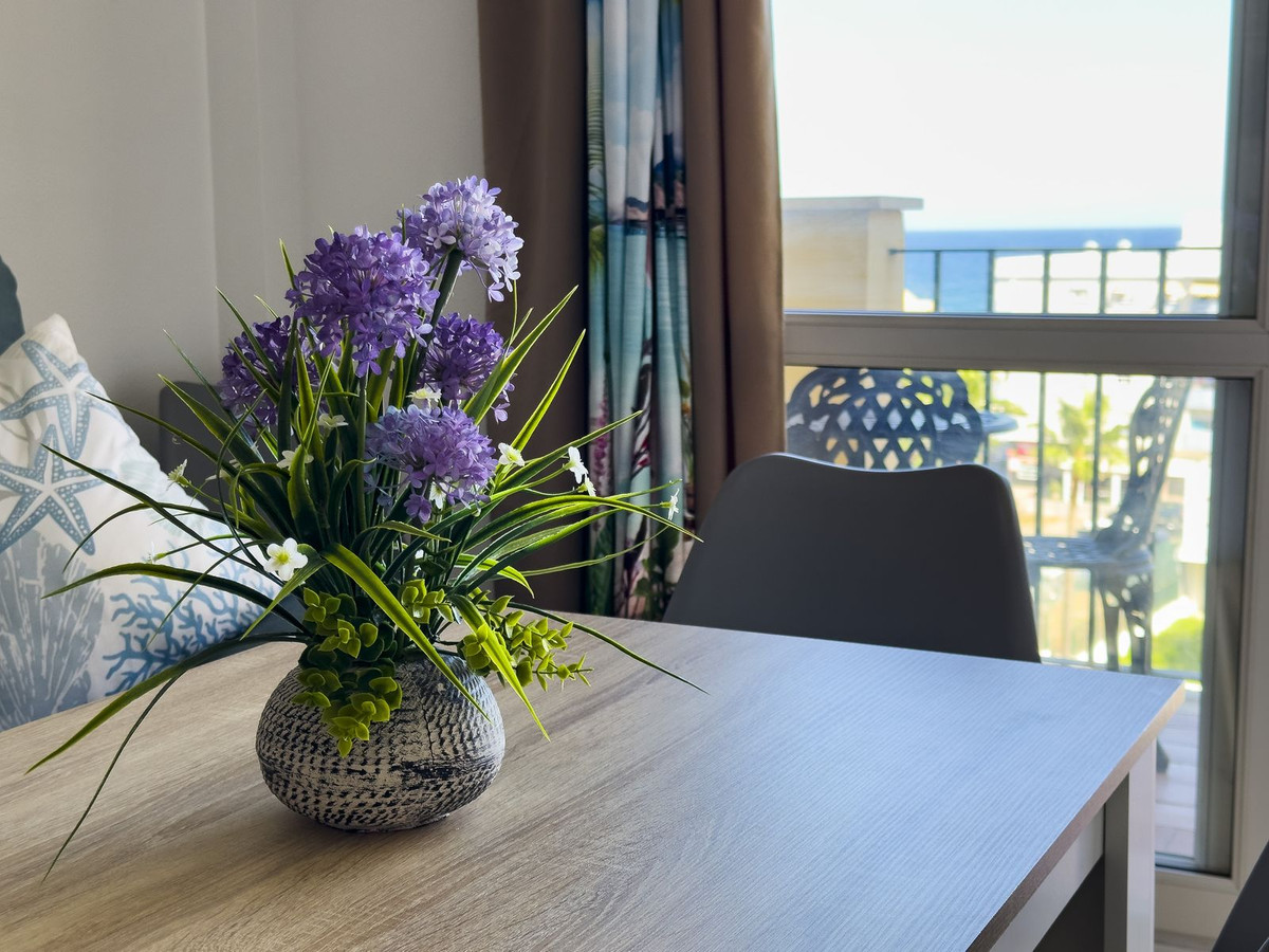 From the living room, there is access to a large private terrace with unobstructed views of the sea and the communal pool—perfect for relaxing, enjoying the climate, or spending time with family and friends.