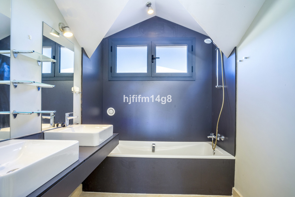 This stunning 2-bedroom duplex penthouse for sale in Ocean Hills, Estepona offers modern, luxurious living with breathtaking panoramic views of the Mediterranean Sea, the surrounding mountains, and the protected natural park that borders the community. Situated in a unique, tranquil setting at the edge of this natural park, Ocean Hills ensures privacy and serenity while remaining just a five-minute drive from Estepona’s beaches. The gated community features two swimming pools, a gym, and beautifully landscaped communal areas, providing a peaceful yet convenient lifestyle on the Costa del Sol.