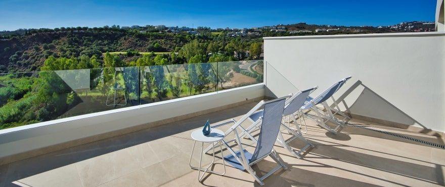 This is a unique new townhouse development located in La Cala Resort, with three golf courses, 4* Hotel & Spa, tennis, football and other sport facilities. Stunning south west facing contemporary 3 bedroom townhouses with gardens, large roof terraces and garage parking. 209m2 built and 98m2 of terraces and solarium. With the most modern and top of the range specifications. Gated and private community with swimming pool and garden areas. ONLY A FEW LEFT from 559,000 euros (excl. 10% VAT)