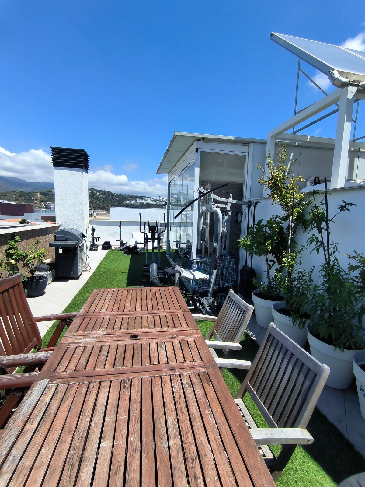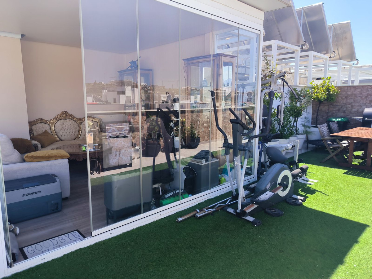 However, the true highlight of this home lies above: an impressive 63 m² private rooftop solarium with panoramic views over the entire city and stretching out to the majestic Sierra Bermeja mountains. This outdoor space invites you to embrace al fresco living—whether it’s sharing meals under the open sky, relaxing in the barbecue area, or even cultivating your own urban garden. There is also a glazed room on the rooftop, ideal as a reading nook, study, or relaxation space.