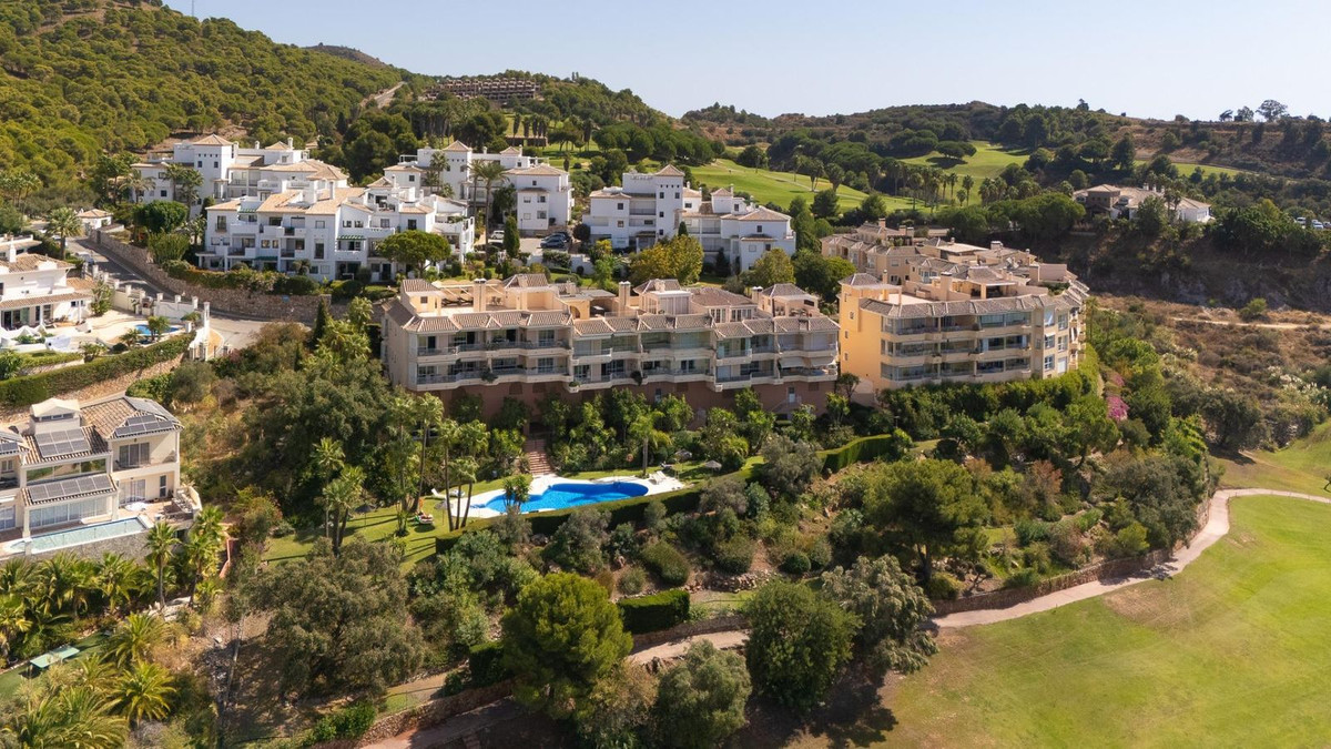 Stunning duplex in Alhaurin Golf with exceptional views of the golf course and in an impeccable condition. The property is very spacious and consists of a large living-dining room with a fireplace opening onto a fabulous and spacious fully glazed terrace with spectacular views of the course. There is also a large fully equipped kitchen as well as two double bedrooms, one en suite and with direct access to the terrace as well as a second bathroom. Upstairs there is a third bedroom and another bathroom and an additional bonus is a second summer lounge ideal for family gatherings. From here we access to a beautiful terrace with a barbecue area and unbeatable 360º views. Also there is a parking space, storage room, swimming pool and communal gardens. A property with many possibilities and great potential.