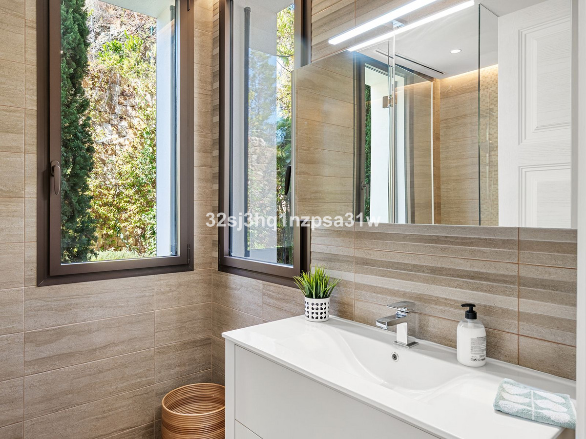 This elegant architectural masterpiece, featuring refined features, comprises a ground floor, a first floor, and a basement. It impresses with its spacious and bright living and dining areas, a modern and elegant fully equipped kitchen, 298 m² terraces, 9 suites with private bathrooms, a wine cellar, and a games room. In addition to the living, reception, and entertainment areas, this house also features a laundry room, a storage room, a dressing room, two guest toilets, and a full bathroom for the housekeepers. Glass doors and huge windows allow natural light to flood the entire house. The rooms open onto magnificent terraces, a subtropical garden with lush lawns, landscaped areas, and a sun terrace. A stunning 12 x 6-meter swimming pool with a sea salt filtration system invites you to cool off on hot days or host memorable parties all year round. The Marbella region is renowned for its climate, considered the best in continental Europe, and your pool is heated. A glass-enclosed gazebo and relaxation area complement a fully equipped kitchen, ideal for barbecues and al fresco dining. A private garage can accommodate four of your favorite cars. This high-end contemporary villa embodies the art of luxury living and is offered for sale with numerous features, including an elevator, parquet flooring, underfloor heating and air conditioning throughout, built-in wardrobes, LED lighting, and more. The neutral color palette creates a truly peaceful atmosphere. Ultramodern and relaxing blend seamlessly in this luxury property, seamlessly blending Mediterranean elegance and functionality.