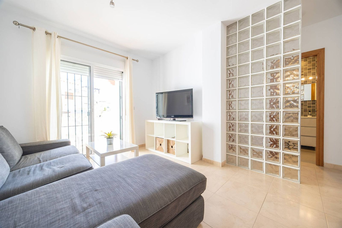 Turnkey 2-bed/1-bath apartment in the Chimeneas area of Nerja. Bright living-dining room, fully fitted kitchen and a separate laundry room. Sold fully furnished. Community pool.