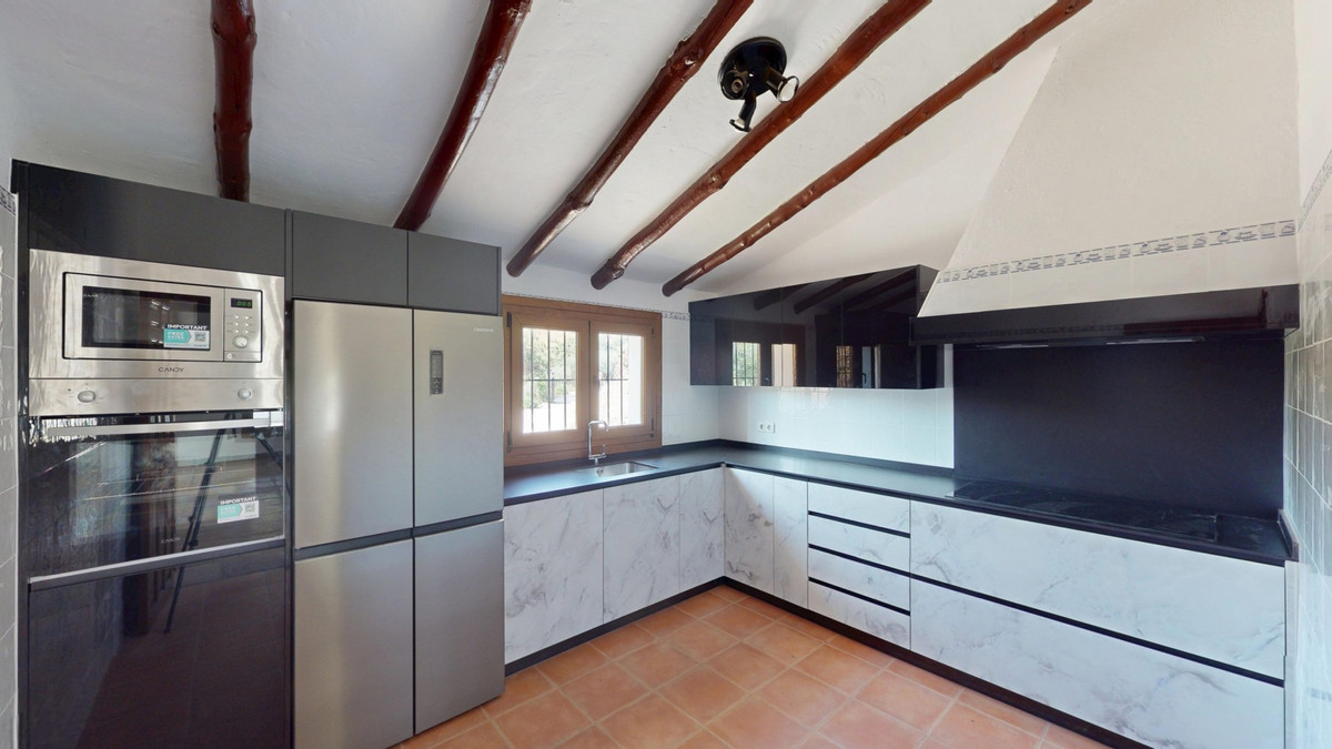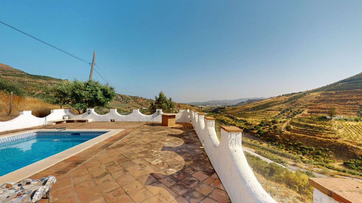This delightful Spanish villa, located in Viñuela, Málaga, offers a perfect blend of traditional charm and modern comfort. The single-story property spans 167 m2 and features three bedrooms, including a spacious 13.9 m2 primary bedroom, and two bathrooms. Upon entering, you're greeted by the home's most striking feature: beautiful terracotta tile flooring that runs throughout, creating a cohesive and authentic Spanish ambiance. The living areas are characterized by their high, sloping ceilings with exposed wooden beams, adding rustic charm and visual interest to the space. The heart of the home is undoubtedly the living room, which boasts a magnificent stone fireplace as its centerpiece. Large windows and glass doors in this area, as well as in the bedrooms, allow ample natural light to flood the interiors while offering picturesque views of the surrounding landscape. The kitchen presents a harmonious blend of traditional and contemporary design. Modern appliances and sleek cabinetry are juxtaposed against the rustic ceiling beams, creating a functional yet aesthetically pleasing culinary space. The bathrooms, while not extensively detailed in the images, appear to have been updated with modern fixtures. Storage is thoughtfully incorporated throughout the home, with built-in wooden wardrobes in the bedrooms that maintain the overall rustic aesthetic. The property also features two patios, offering delightful outdoor spaces for relaxation and entertainment. A unique aspect of this villa is its attention to decorative details, such as the ornate tile borders in the hallways and bathrooms, which add a touch of traditional Spanish flair to the otherwise simple and elegant interiors. Outside, the villa boasts a beautiful pool and a charming outdoor area perfect for enjoying the  Mediterranean climate. Overall, this Málaga villa offers a warm, inviting atmosphere that beautifully marries traditional Spanish architectural elements with modern comforts, creating a truly special living space. We are pleased to be able to present this dream property to you soon, either personally or via virtual viewing. Because this world is unique - just like our Axarquía. In Andalusia. On the Costa del Sol. Here, on the sunny side of life...