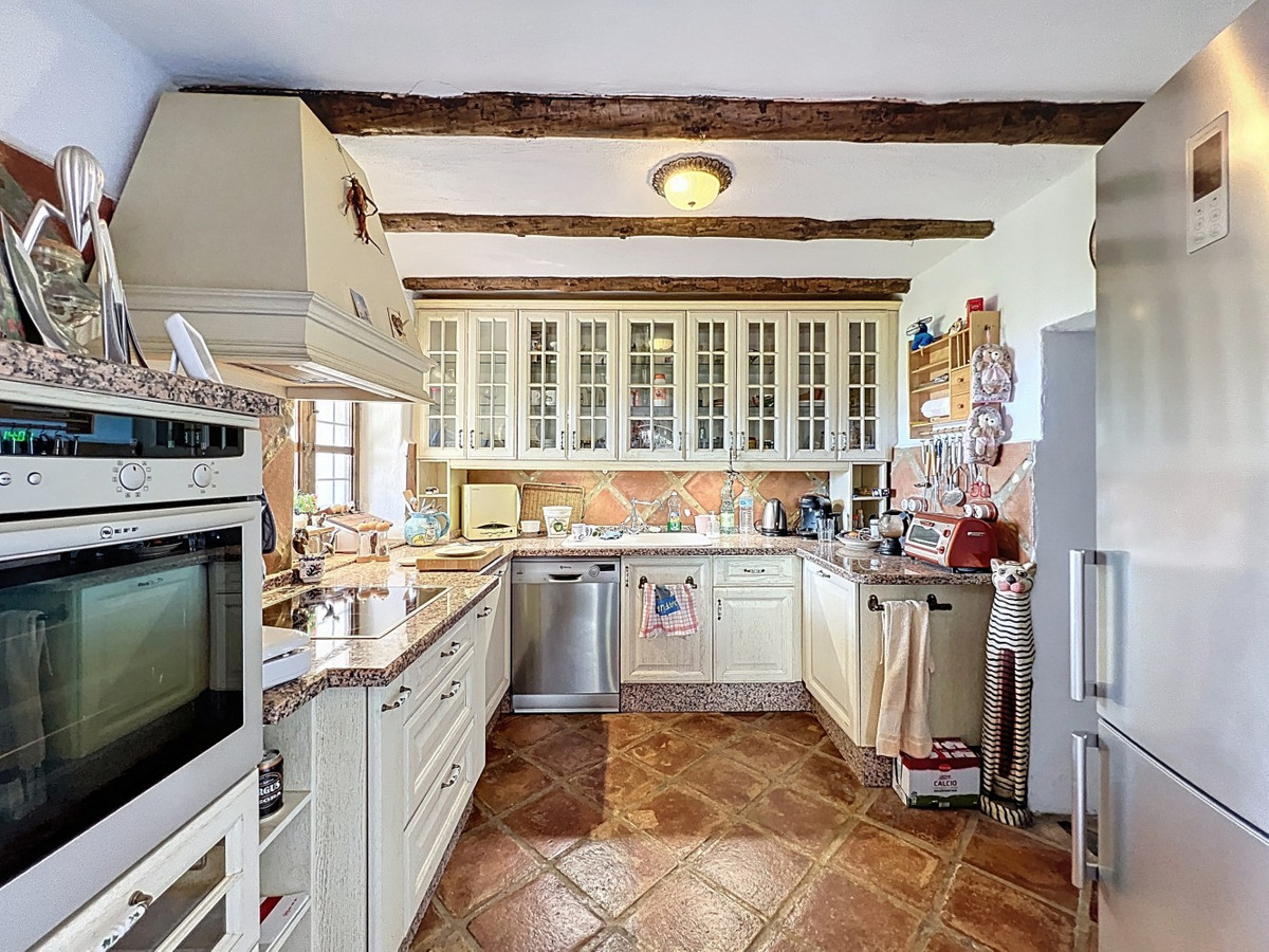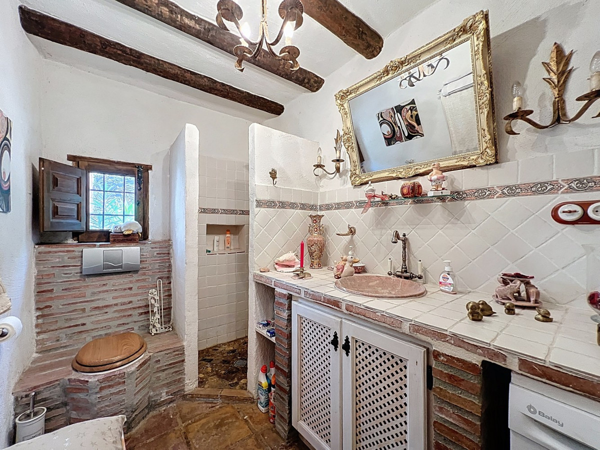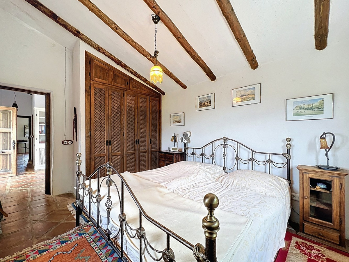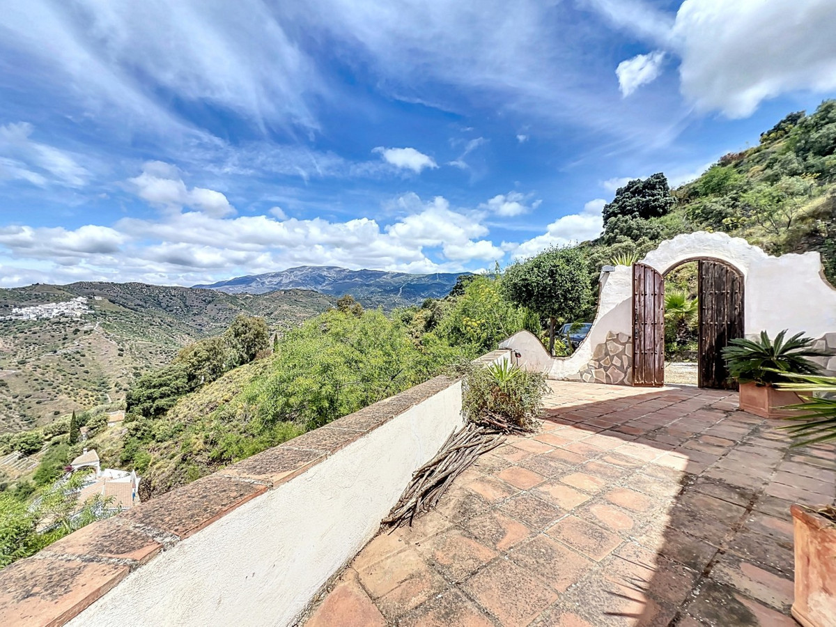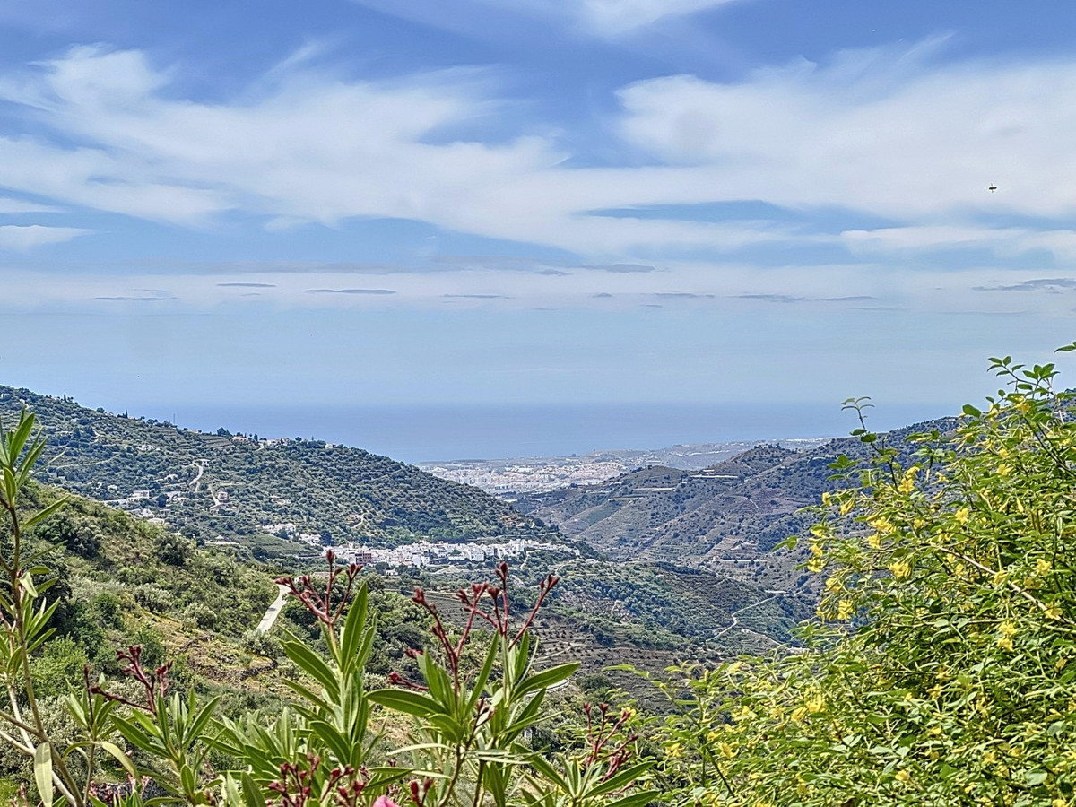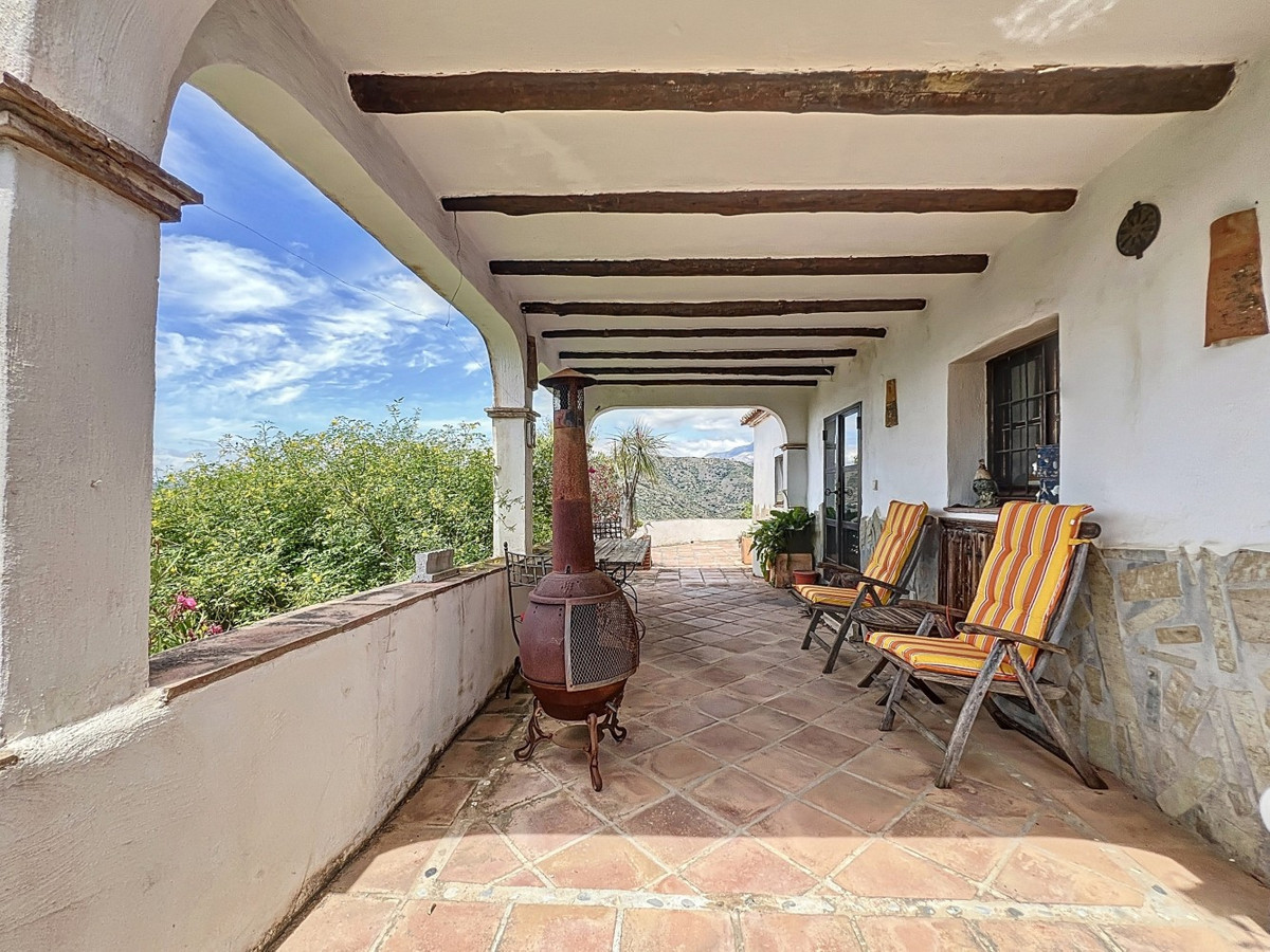 This charming Spanish country house in Sayalonga/Árchez, Málaga, blends traditional character with modern comfort all set against a backdrop of breathtaking views. The property offers a constructed area of 199 m2 and 148 m2 of living space spread over two floors, with three bedrooms and two bathrooms ideal for families or guests. Inside, rustic features dominate: exposed wooden beams under whitewashed ceilings add warmth and authenticity to every room. Terracotta tiles emphasize the Mediterranean style and create a harmonious overall aesthetic. A major highlight is the well-thought-out heating solution: a modern pellet stove in the hallway efficiently warms the entire house. Additionally, there's a cosy wood-burning stove in the living room and an infrared panel heater for extra comfort on cooler evenings. The bathrooms also feature electric infrared heaters to ensure a pleasant, warm atmosphere. Both the living room and bedrooms include built-in wardrobes that offer practical storage while blending seamlessly with the style. Plush furniture in warm red tones, decorative mirrors, colourful artworks, and personal collections give the space a relaxed, bohemian vibe. A striking archway connects the interior to one of the terraces and opens up to stunning views of the countryside. The kitchen is both charming and functional, with cream cabinets, granite countertops, modern appliances, and a patterned tile backsplash. A decorative extractor hood completes the picture. The two bathrooms are individually designed: one features a bathtub and artistic rustic tiles, while the other has a modern look with clean lines and contemporary fittings. Both complement the character of the house. The bedrooms reflect the Andalusian style, with wrought iron beds, wooden furniture, warm lighting, and the aforementioned built-in wardrobes that add comfort and order. Outside, several terraces offer spectacular views of the sea, rolling hills, and white villages. One of the terraces is covered and offers expansion potential ideal for one or two additional rooms. The outdoor area also includes a private pool, various seating areas, an outdoor kitchen, and a well-kept garden perfect for sociable evenings or quiet moments in nature. This villa combines timeless architecture with personal touches, thoughtful amenities, and spectacular views a true taste of Andalusian living. We are pleased to be able to present this dream property to you soon, either personally or via virtual viewing. Because this world is unique - just like our Axarquía. In Andalusia. On the Costa del Sol. Here, on the sunny side of life...