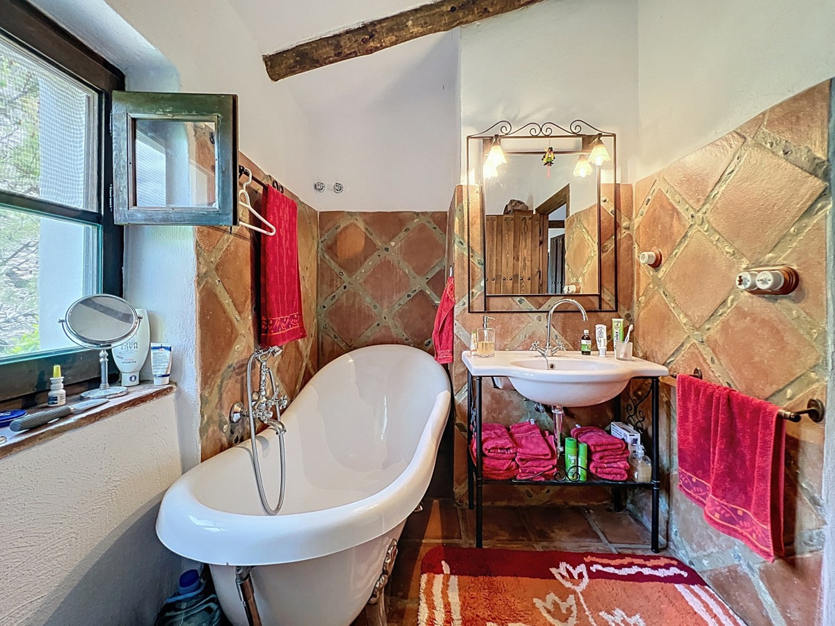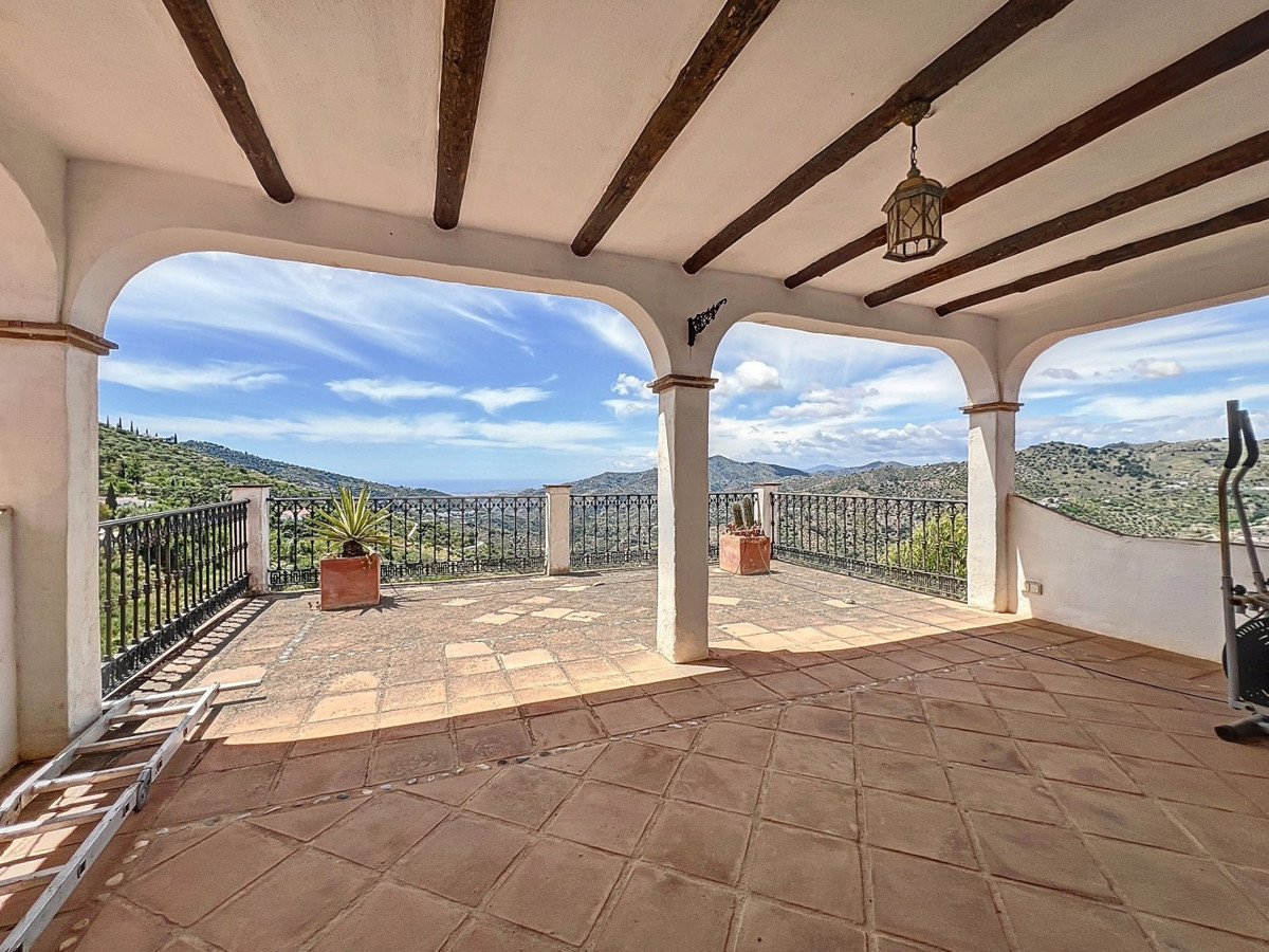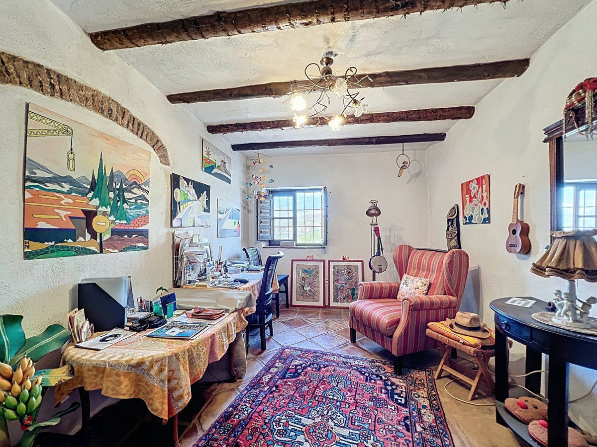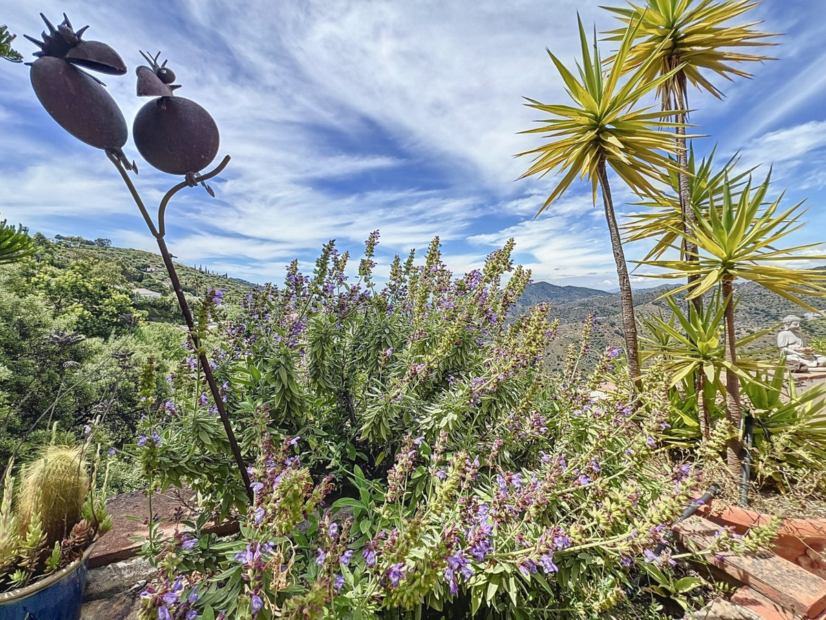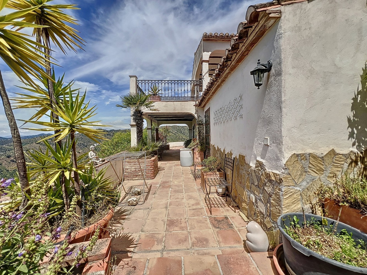 This charming Spanish country house in Sayalonga/Árchez, Málaga, blends traditional character with modern comfort all set against a backdrop of breathtaking views. The property offers a constructed area of 199 m2 and 148 m2 of living space spread over two floors, with three bedrooms and two bathrooms ideal for families or guests. Inside, rustic features dominate: exposed wooden beams under whitewashed ceilings add warmth and authenticity to every room. Terracotta tiles emphasize the Mediterranean style and create a harmonious overall aesthetic. A major highlight is the well-thought-out heating solution: a modern pellet stove in the hallway efficiently warms the entire house. Additionally, there's a cosy wood-burning stove in the living room and an infrared panel heater for extra comfort on cooler evenings. The bathrooms also feature electric infrared heaters to ensure a pleasant, warm atmosphere. Both the living room and bedrooms include built-in wardrobes that offer practical storage while blending seamlessly with the style. Plush furniture in warm red tones, decorative mirrors, colourful artworks, and personal collections give the space a relaxed, bohemian vibe. A striking archway connects the interior to one of the terraces and opens up to stunning views of the countryside. The kitchen is both charming and functional, with cream cabinets, granite countertops, modern appliances, and a patterned tile backsplash. A decorative extractor hood completes the picture. The two bathrooms are individually designed: one features a bathtub and artistic rustic tiles, while the other has a modern look with clean lines and contemporary fittings. Both complement the character of the house. The bedrooms reflect the Andalusian style, with wrought iron beds, wooden furniture, warm lighting, and the aforementioned built-in wardrobes that add comfort and order. Outside, several terraces offer spectacular views of the sea, rolling hills, and white villages. One of the terraces is covered and offers expansion potential ideal for one or two additional rooms. The outdoor area also includes a private pool, various seating areas, an outdoor kitchen, and a well-kept garden perfect for sociable evenings or quiet moments in nature. This villa combines timeless architecture with personal touches, thoughtful amenities, and spectacular views a true taste of Andalusian living. We are pleased to be able to present this dream property to you soon, either personally or via virtual viewing. Because this world is unique - just like our Axarquía. In Andalusia. On the Costa del Sol. Here, on the sunny side of life...