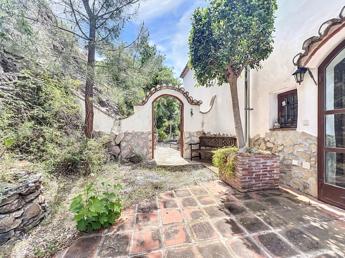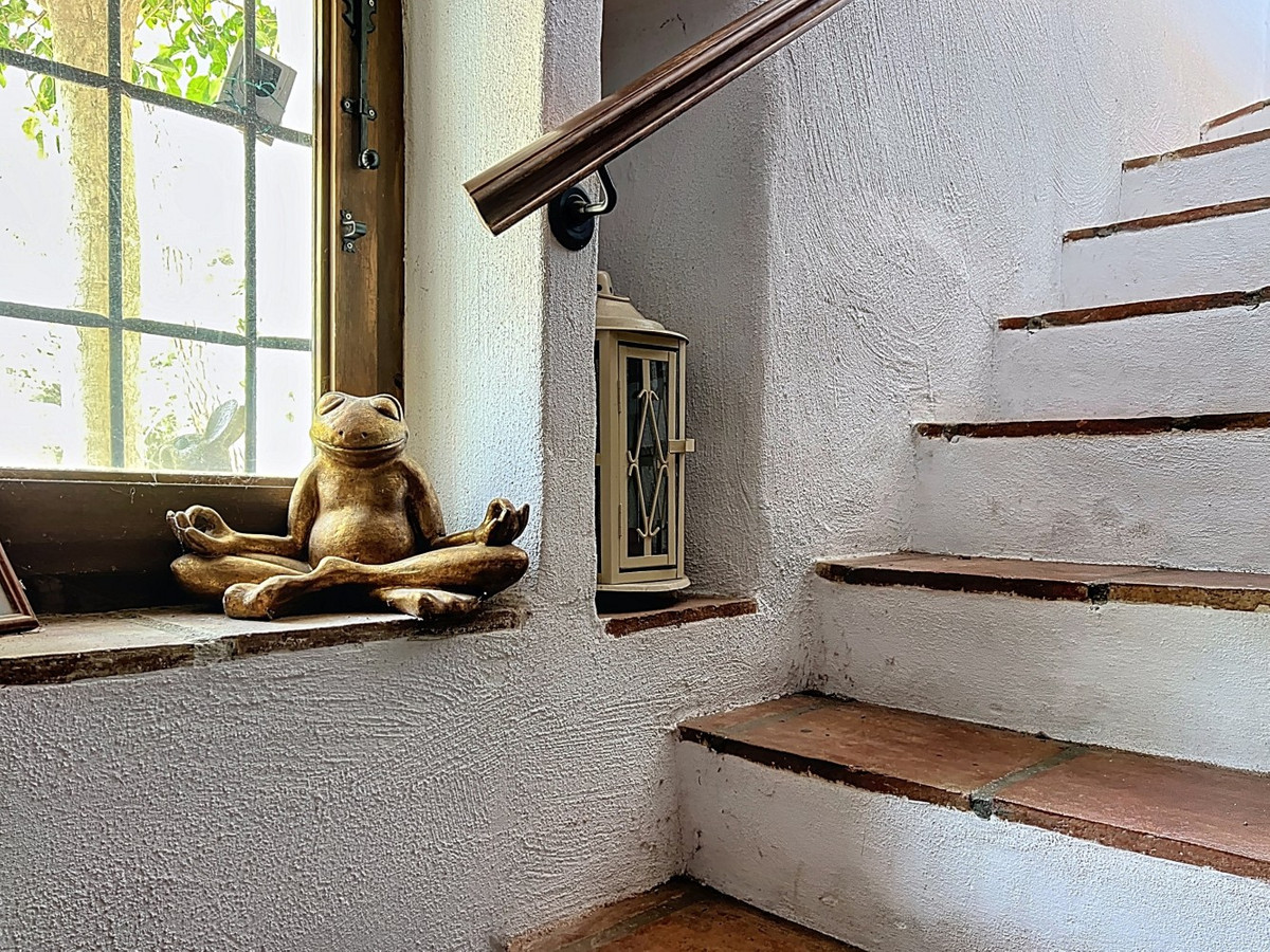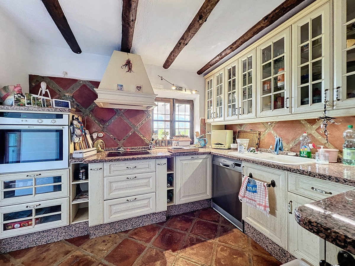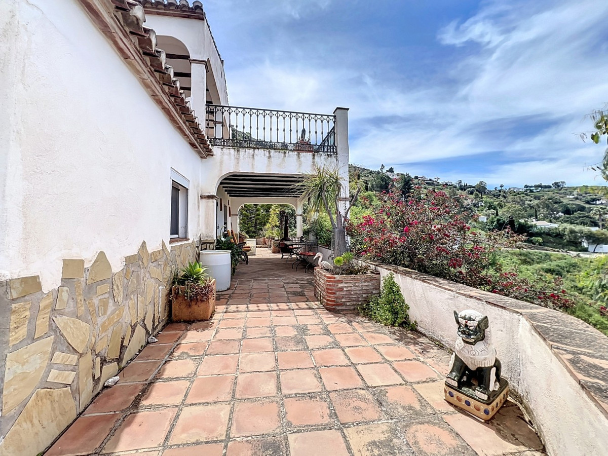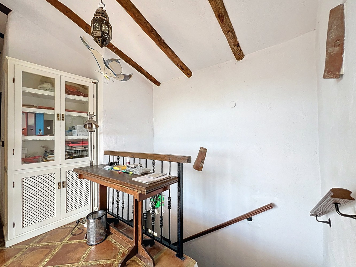 This charming Spanish country house in Sayalonga/Árchez, Málaga, blends traditional character with modern comfort all set against a backdrop of breathtaking views. The property offers a constructed area of 199 m2 and 148 m2 of living space spread over two floors, with three bedrooms and two bathrooms ideal for families or guests. Inside, rustic features dominate: exposed wooden beams under whitewashed ceilings add warmth and authenticity to every room. Terracotta tiles emphasize the Mediterranean style and create a harmonious overall aesthetic. A major highlight is the well-thought-out heating solution: a modern pellet stove in the hallway efficiently warms the entire house. Additionally, there's a cosy wood-burning stove in the living room and an infrared panel heater for extra comfort on cooler evenings. The bathrooms also feature electric infrared heaters to ensure a pleasant, warm atmosphere. Both the living room and bedrooms include built-in wardrobes that offer practical storage while blending seamlessly with the style. Plush furniture in warm red tones, decorative mirrors, colourful artworks, and personal collections give the space a relaxed, bohemian vibe. A striking archway connects the interior to one of the terraces and opens up to stunning views of the countryside. The kitchen is both charming and functional, with cream cabinets, granite countertops, modern appliances, and a patterned tile backsplash. A decorative extractor hood completes the picture. The two bathrooms are individually designed: one features a bathtub and artistic rustic tiles, while the other has a modern look with clean lines and contemporary fittings. Both complement the character of the house. The bedrooms reflect the Andalusian style, with wrought iron beds, wooden furniture, warm lighting, and the aforementioned built-in wardrobes that add comfort and order. Outside, several terraces offer spectacular views of the sea, rolling hills, and white villages. One of the terraces is covered and offers expansion potential ideal for one or two additional rooms. The outdoor area also includes a private pool, various seating areas, an outdoor kitchen, and a well-kept garden perfect for sociable evenings or quiet moments in nature. This villa combines timeless architecture with personal touches, thoughtful amenities, and spectacular views a true taste of Andalusian living. We are pleased to be able to present this dream property to you soon, either personally or via virtual viewing. Because this world is unique - just like our Axarquía. In Andalusia. On the Costa del Sol. Here, on the sunny side of life...