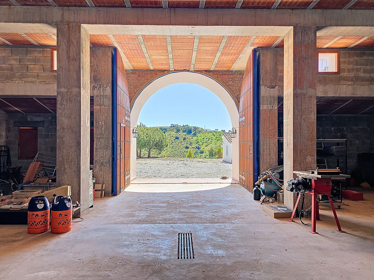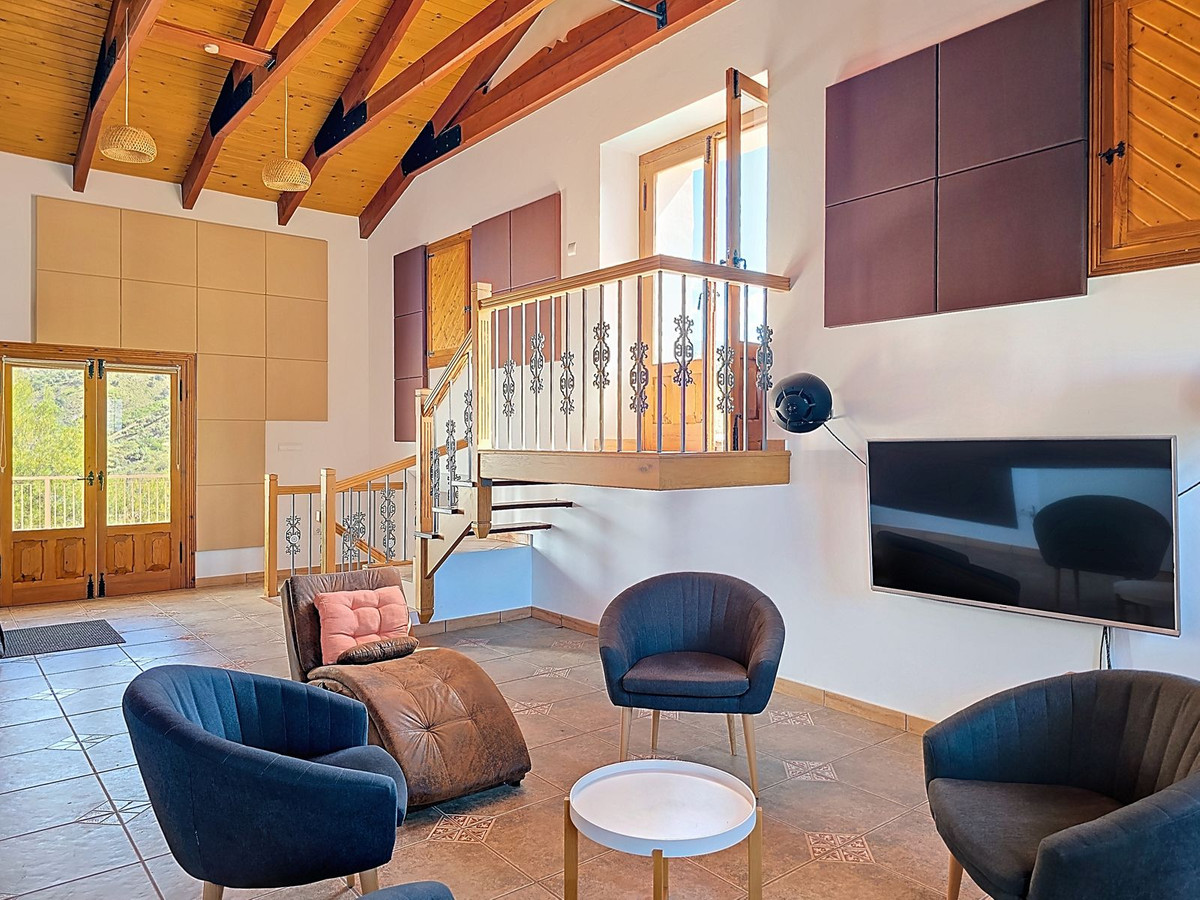 Below the main villa, a spacious garage with impressive custom-crafted wooden doors provides ample space for multiple vehicles or can easily be transformed into a workshop, gym, art studio, or even four additional bedrooms. Around the villa, nearly 100 m² of terraces and sun-drenched solariums capture spectacular panoramic views of the Sierra de Almijara mountains.