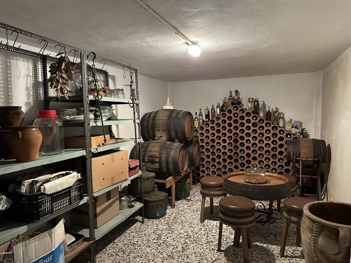On the ground floor, it features a large garage, a guest toilet, and a room currently used as a wine cellar, perfect for family gatherings or special storage. From here, you can access a beautiful interior patio, partly covered and partly open-air, which brings natural light and ventilation into the home.