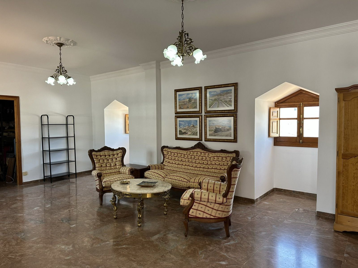 At the top of the property, there is a generous terrace with stunning views of the Fortress, ideal for enjoying the climate and sunsets of La Axarquía. This floor also includes a cozy room set up as a lounge and an additional toilet, from which you can also admire views of the Hermitage of the Virgen de los Remedios.