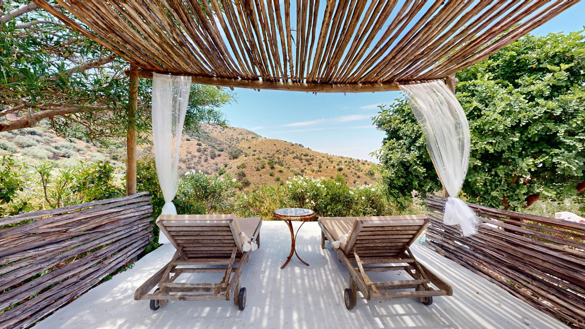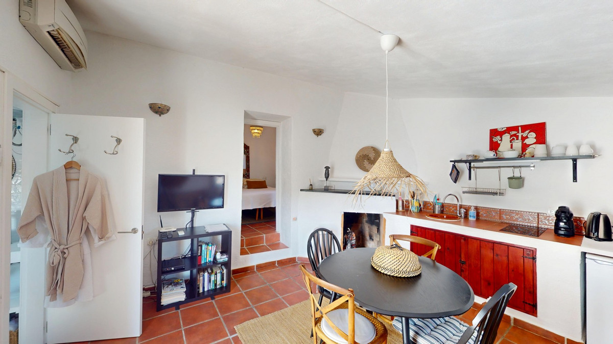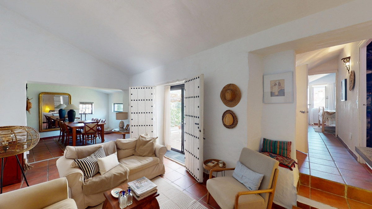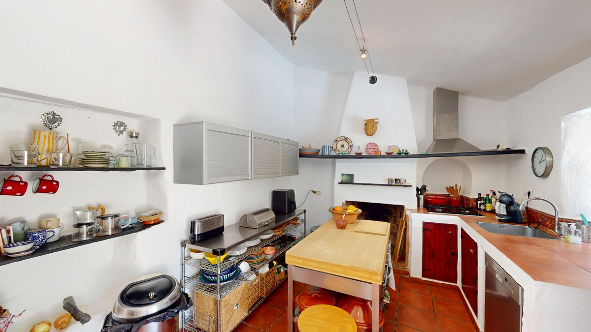 Nestled in the hills of Arenas, Málaga, this enchanting cortijo is more than just a home it's a Mediterranean haven full of character, peace, and possibility. Divided into three separate apartments, its perfectly suited for use as a charming B&B or a spacious family retreat, offering flexibility, comfort, and soul. The main apartment features two bedrooms and two stylish bathrooms, each with walk-in showers and carefully chosen details like marble vanities and patterned tiles. The open-plan living area exudes warmth, with terracotta floors, a soft grey sectional sofa, rattan accents, and a sparkling crystal chandelier. The kitchen is both beautiful and practical, with white cabinetry, colorful tiles, and modern appliances including a dishwasher and oven. The second apartment is a cozy, light-filled one-bedroom retreat. Though compact, it offers everything you need a small kitchenette, a chic bathroom with a tropical-leaf tiled shower, and elegant touches like chandeliers and decorative mirrors. Rattan, terracotta, and woven details bring warmth and texture to every corner. The third apartment offers a thoughtful layout with a bedroom, bathroom, office, kitchen, and living areas. Whitewashed walls, a fireplace, and large windows give it a bright, open feel, while red kitchen cabinets and rustic furnishings add a splash of personality. Every room is adorned with artistic elements, unique lighting, and handcrafted decor. But its the outdoor space that truly makes this property magical. The cortijo is surrounded by breathtaking mountain views, and the grounds are filled with charm natural stone flooring, shady terraces, tucked-away seating nooks, a daybed for lazy afternoons, and turquoise water shimmering in the pool. The covered outdoor kitchen is a highlight in itself, with handmade tiles and a handcrafted worktop that speaks to the care and love poured into every detail of this home. Every corner of this cortijo is full of character from artistic wall hangings and handmade lighting to the sense of calm that wraps around you the moment you arrive. Whether youre seeking a peaceful personal retreat or ready to welcome guests to a special B&B, this Andalusian gem is the perfect getaway. We are pleased to be able to present this dream property to you soon, either personally or via virtual viewing. Because this world is unique - just like our Axarquía. In Andalusia. On the Costa del Sol. Here, on the sunny side of life...